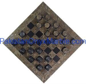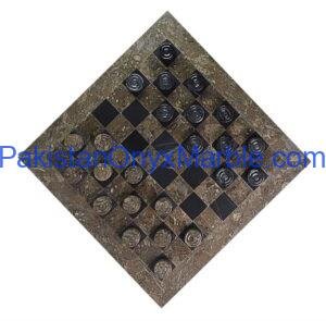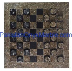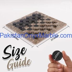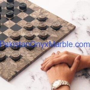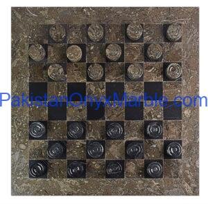 Checker sets are manufactured using natural marble, onyx, and travertine stone sourced from Pakistan’s stone quarries. These materials are widely valued for their durability, natural patterns, and premium aesthetic.