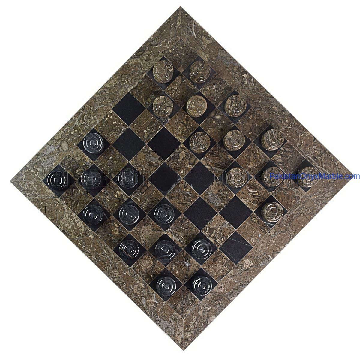 Marble Checker Set Premium Quality: Oceanic Fossil Marble & Black Marble Handmade Luxury Board & Pieces Photo Gallery