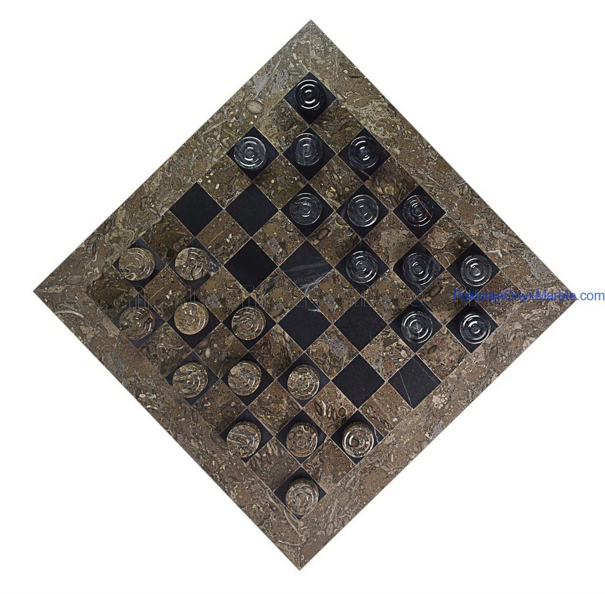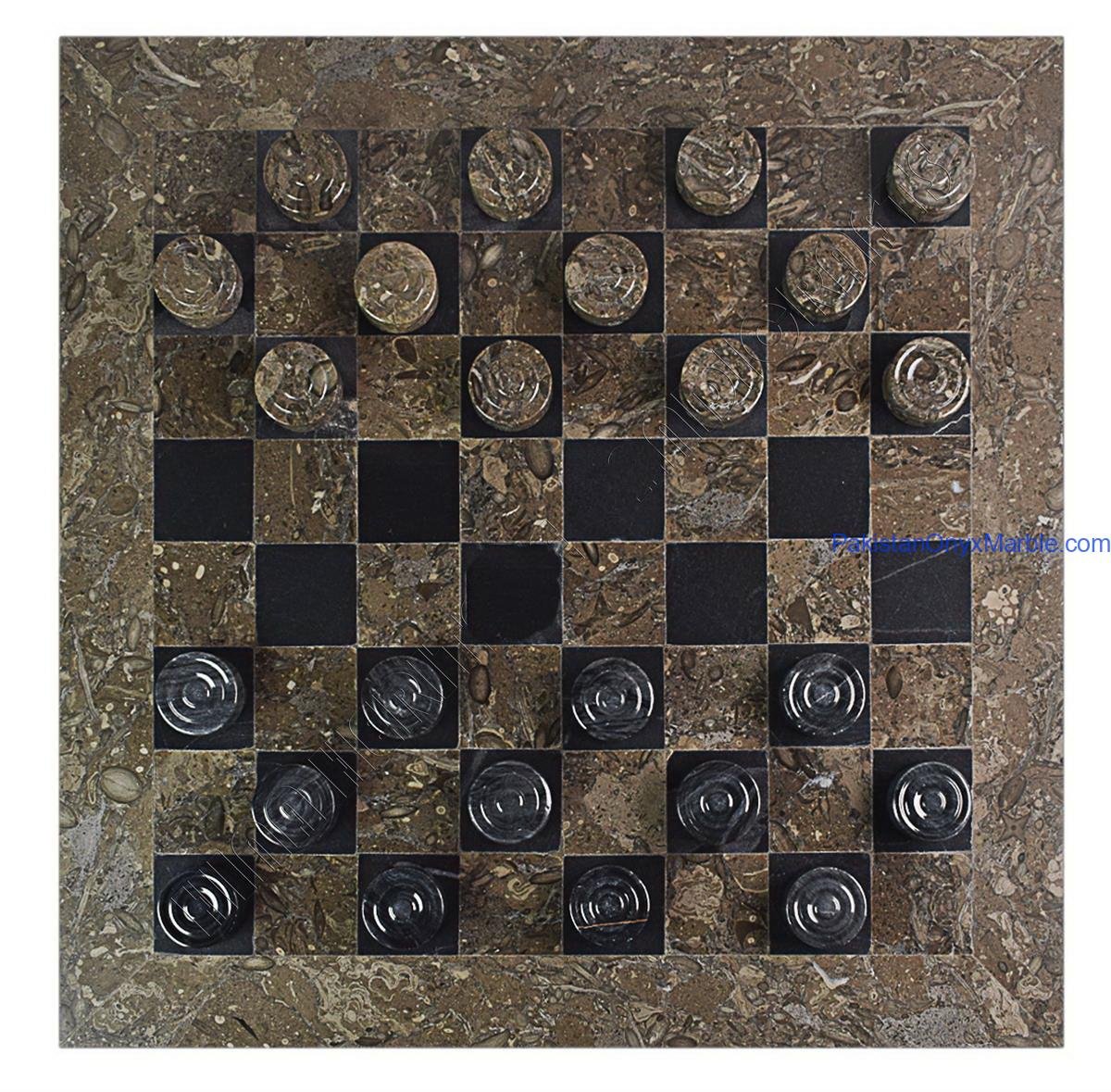 Marble Checker Set Premium Quality: Oceanic Fossil Marble & Black Marble Handmade Luxury Board & Pieces