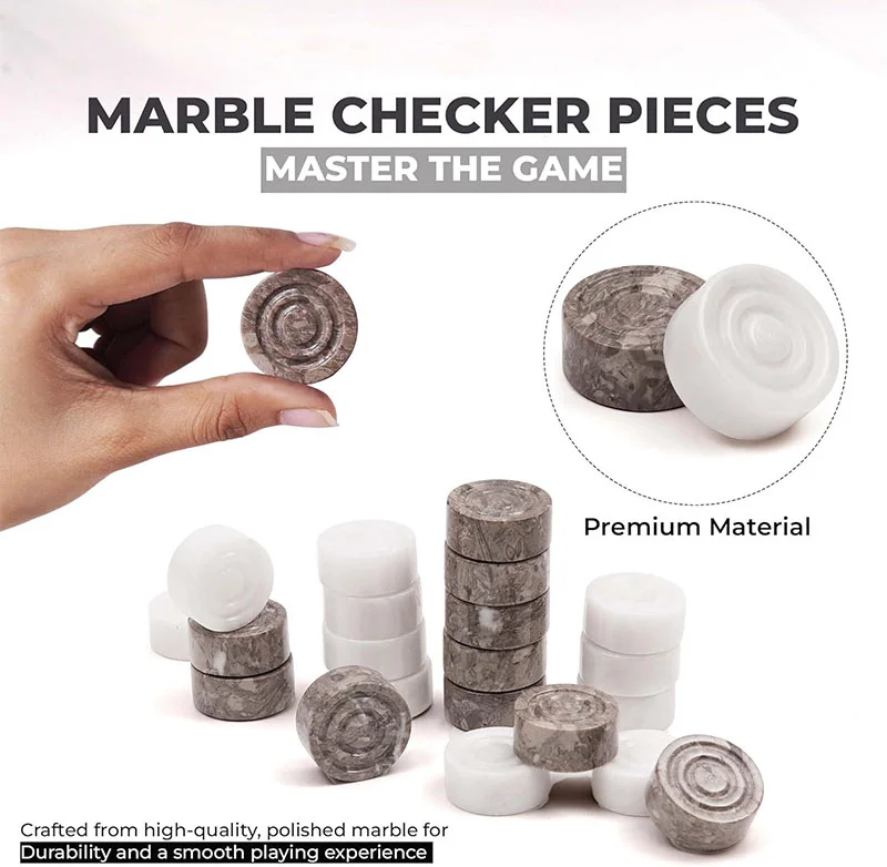 Checker sets are manufactured using natural marble, onyx, and travertine stone sourced from Pakistan’s stone quarries. These materials are widely valued for their durability, natural patterns, and premium aesthetic.