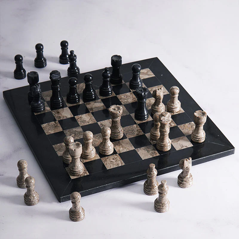 Marble Chess Set: Black Marble & Oceanic Fossil Marble Handmade Luxury Board & Pieces Photo Gallery