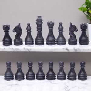 Chess Pieces: traditional Staunton-style or custom profiles, solid stone, optional felt bases.