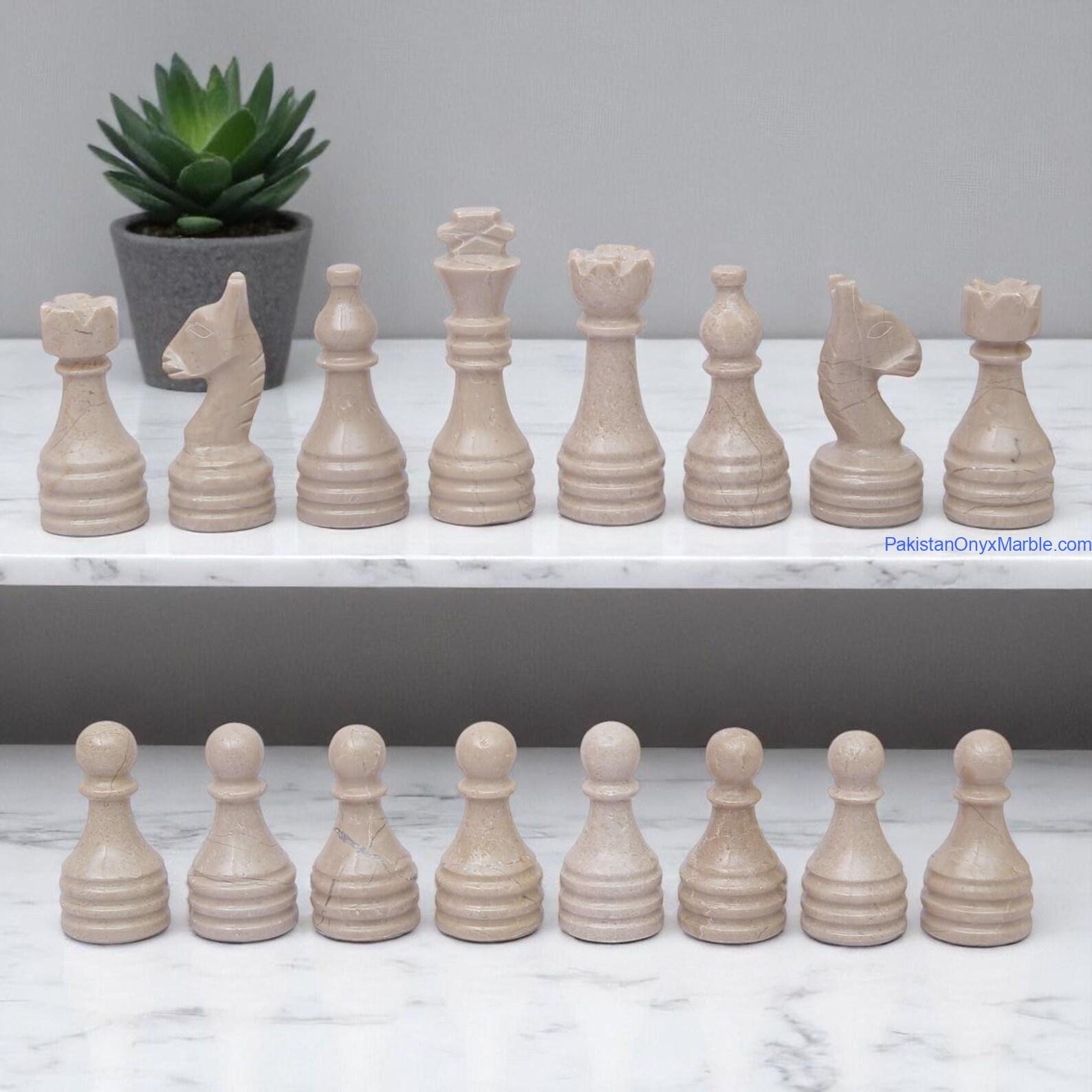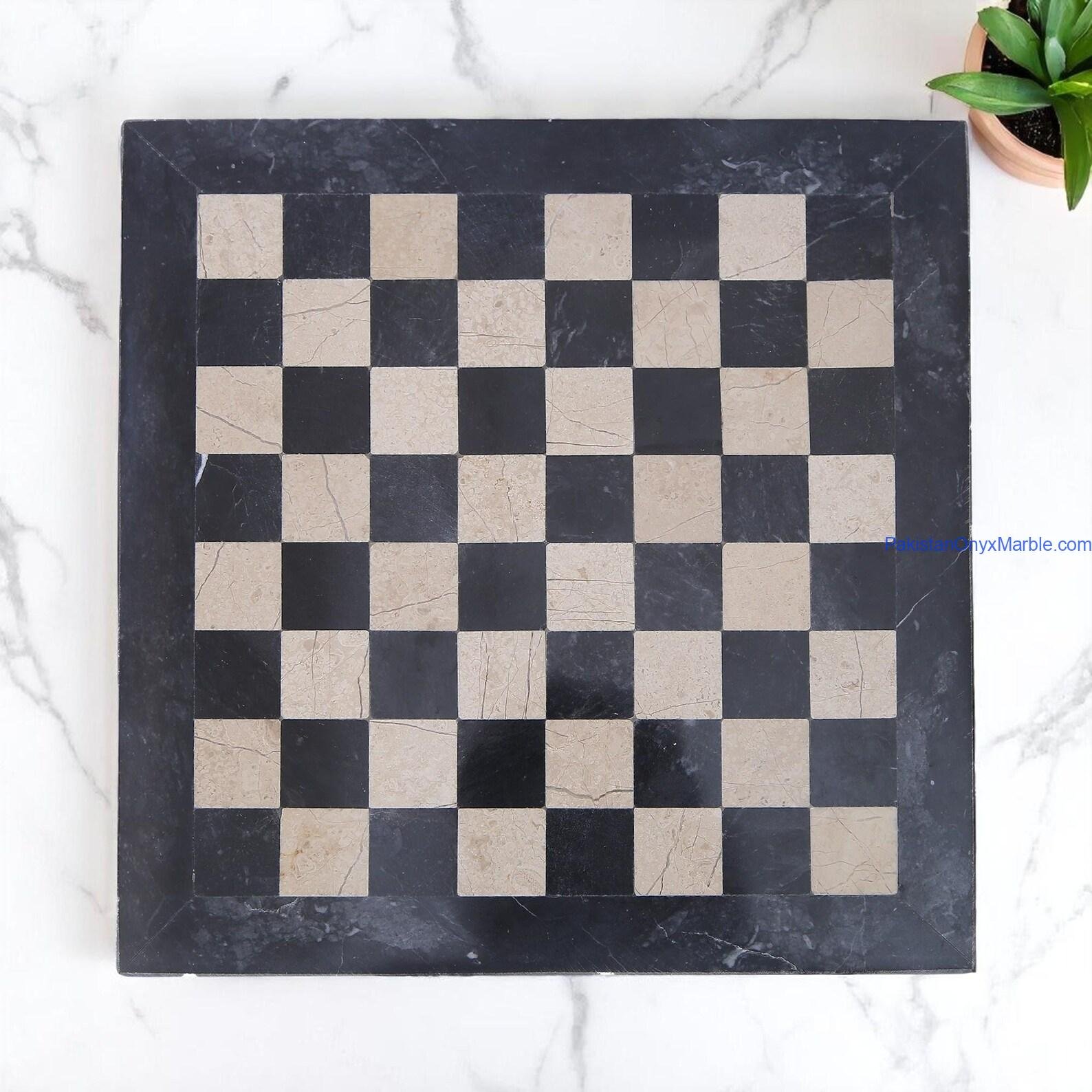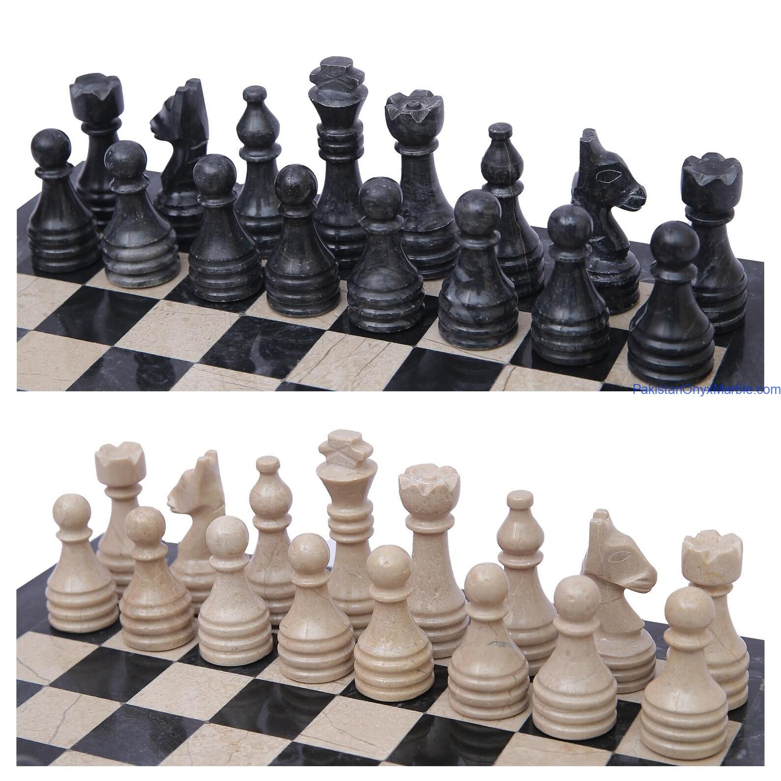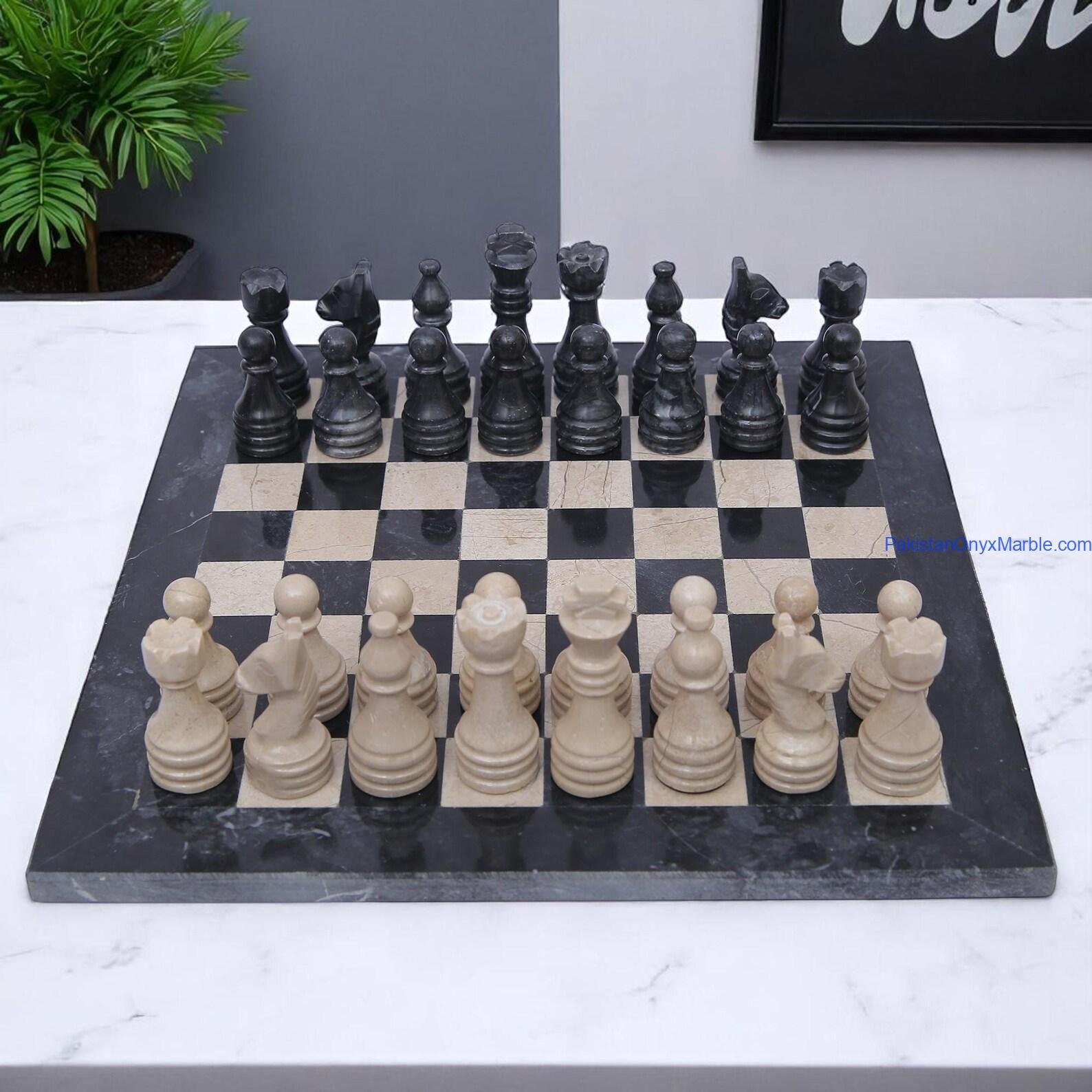 Marble Chess Set: Black Marble & Verona Beige Marble Handmade Luxury Board & Pieces