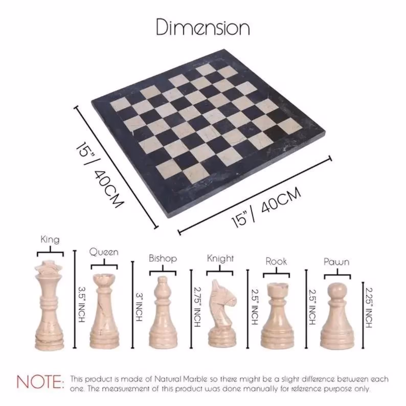 • Matching marble or onyx chess pieces