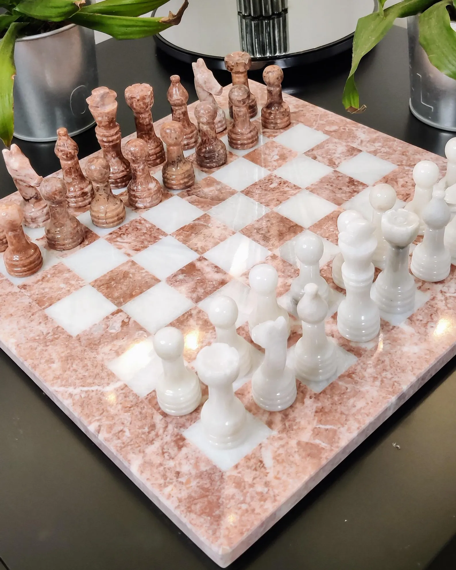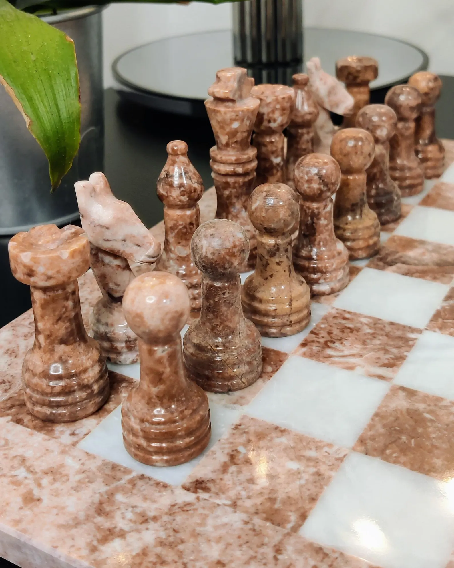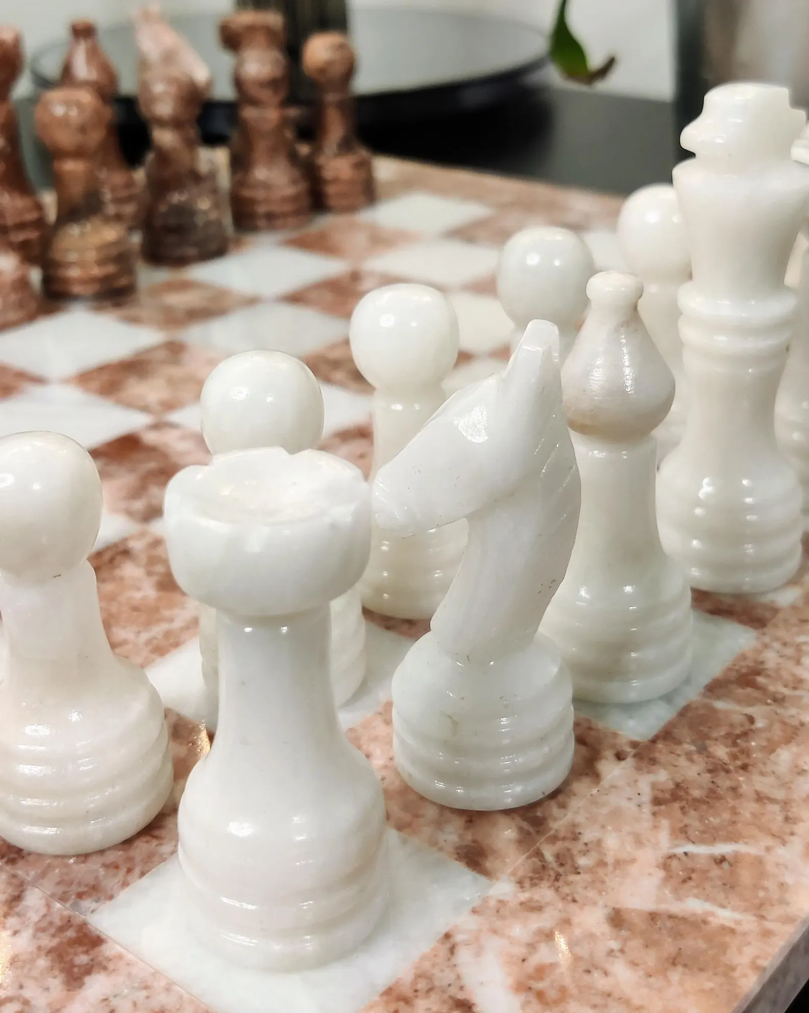 Matching marble or onyx chess pieces