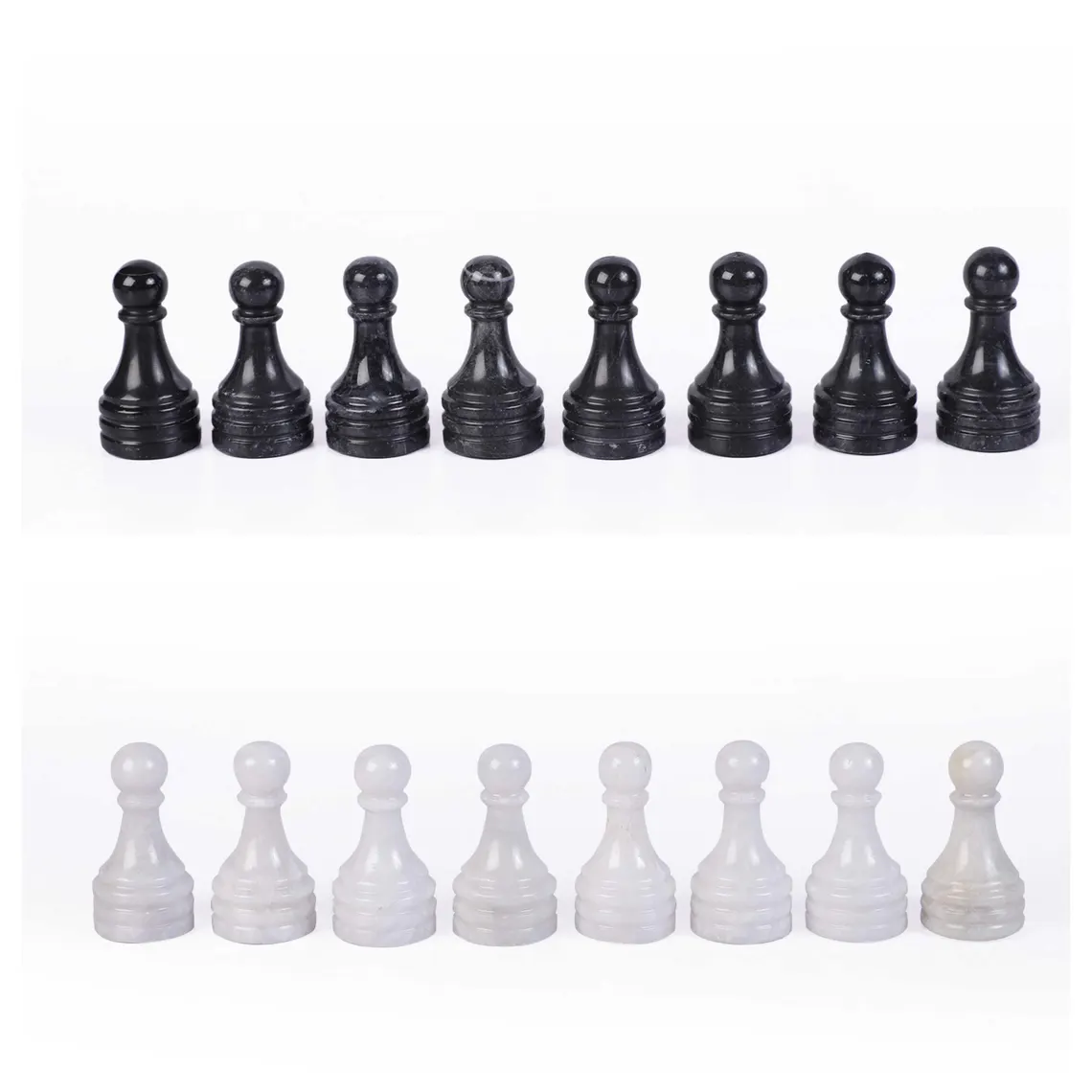 Chess Pieces: traditional Staunton-style or custom profiles, solid stone, optional felt bases.
