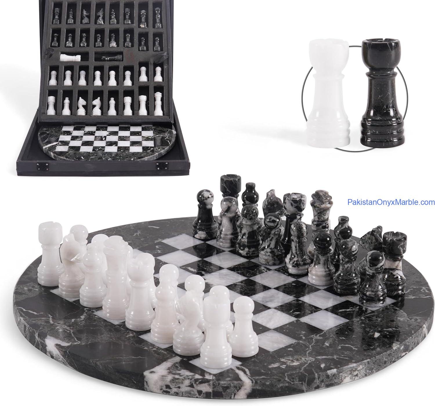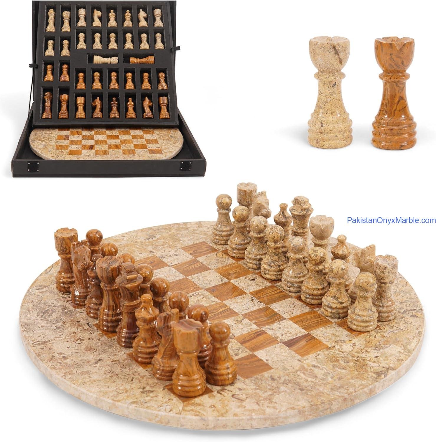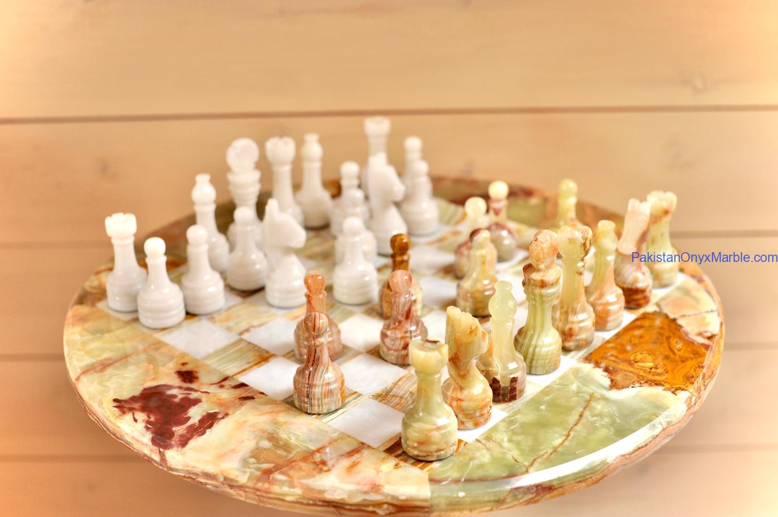 All Marble & Onyx Chess Set Round Boards are handcrafted luxury stone chess sets manufactured in Pakistan for international wholesale and export markets. Designed in a circular format instead of the traditional square board, these round chess sets offer a modern, decorative, and distinctive appearance while remaining fully functional for gameplay.
