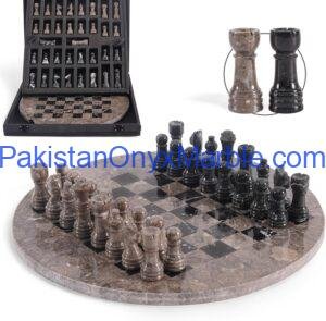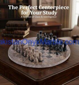 All Marble & Onyx Chess Set Round Boards are handcrafted luxury stone chess sets manufactured in Pakistan for international wholesale and export markets. Designed in a circular format instead of the traditional square board, these round chess sets offer a modern, decorative, and distinctive appearance while remaining fully functional for gameplay.