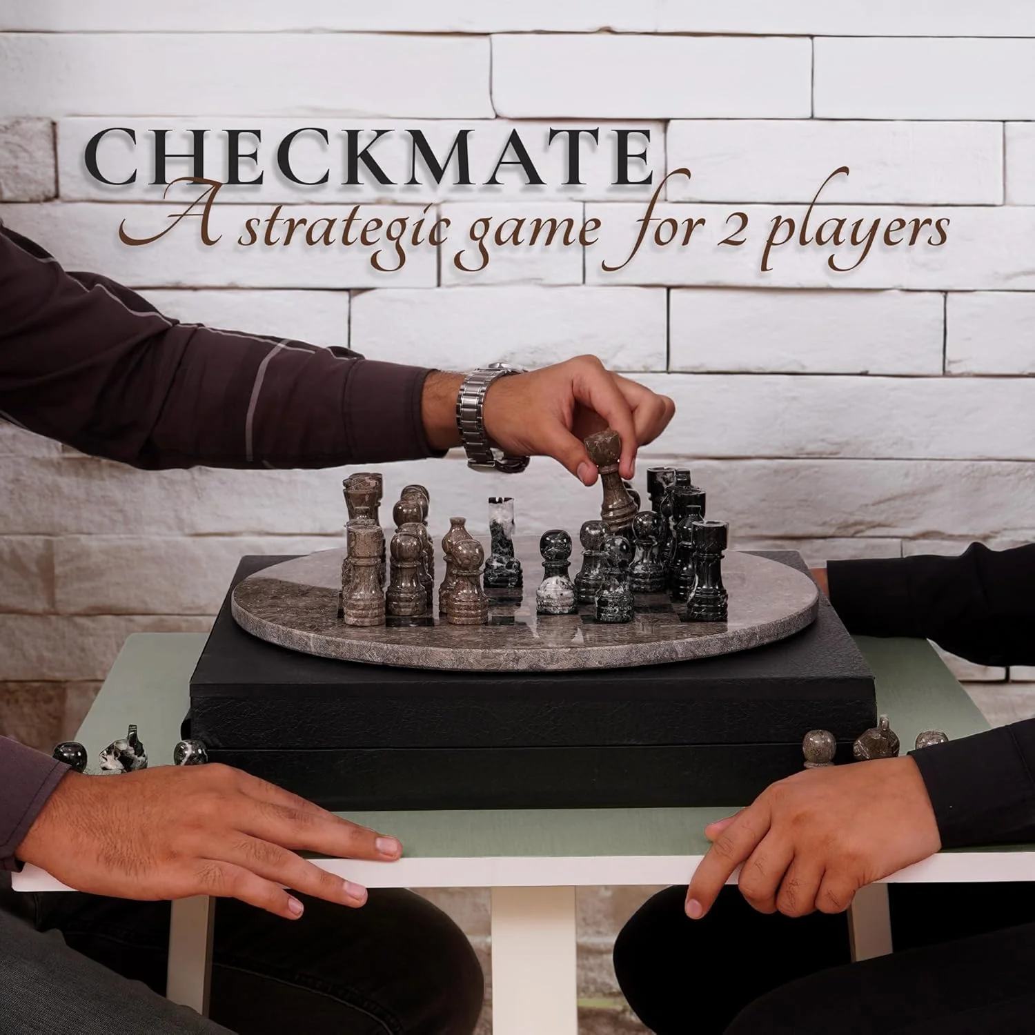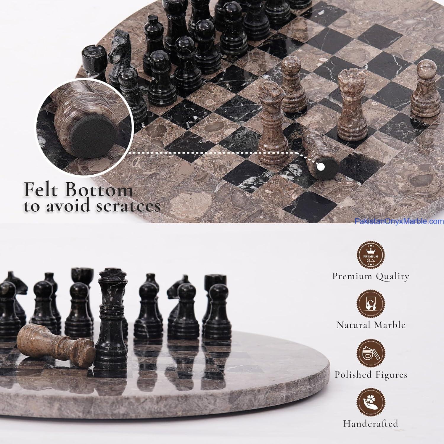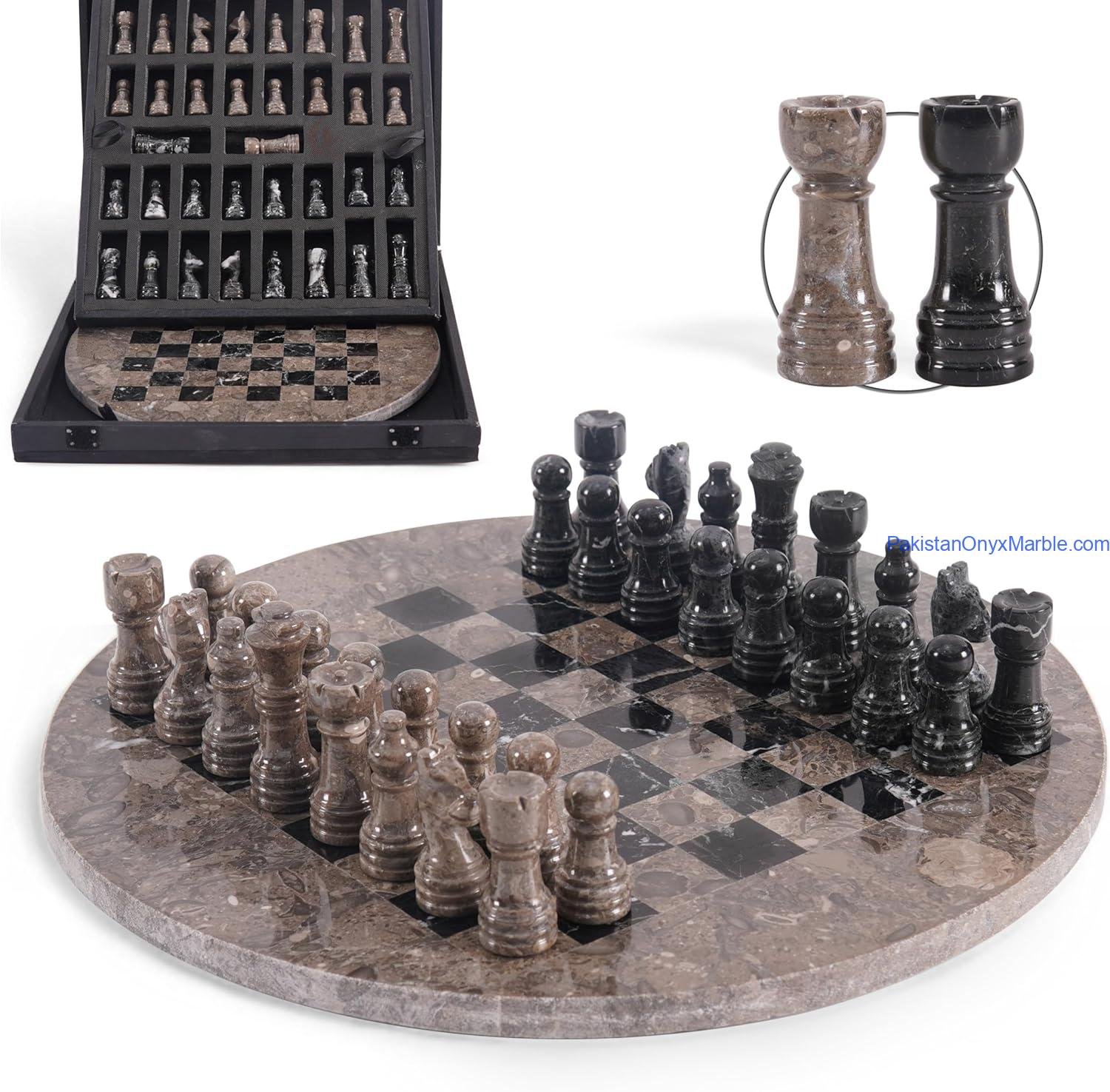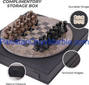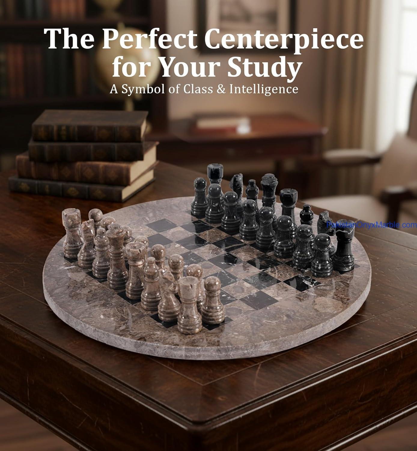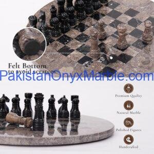 All Marble & Onyx Chess Set Round Boards are handcrafted luxury stone chess sets manufactured in Pakistan for international wholesale and export markets. Designed in a circular format instead of the traditional square board, these round chess sets offer a modern, decorative, and distinctive appearance while remaining fully functional for gameplay.
