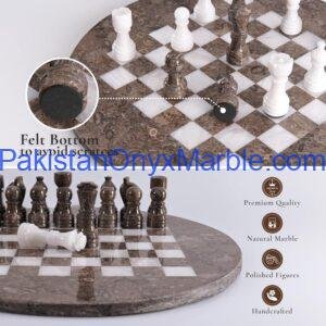 All Marble & Onyx Chess Set Round Boards are handcrafted luxury stone chess sets manufactured in Pakistan for international wholesale and export markets. Designed in a circular format instead of the traditional square board, these round chess sets offer a modern, decorative, and distinctive appearance while remaining fully functional for gameplay.