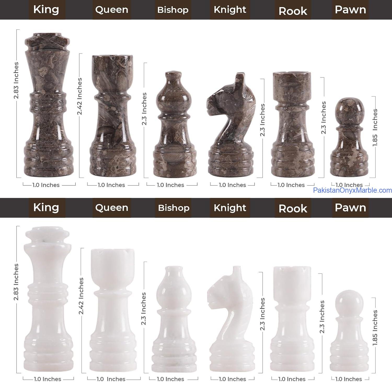 Each chess set displays unique veining and tonal variation. A 5–30% natural color variation is normal and confirms the authenticity of genuine stone.