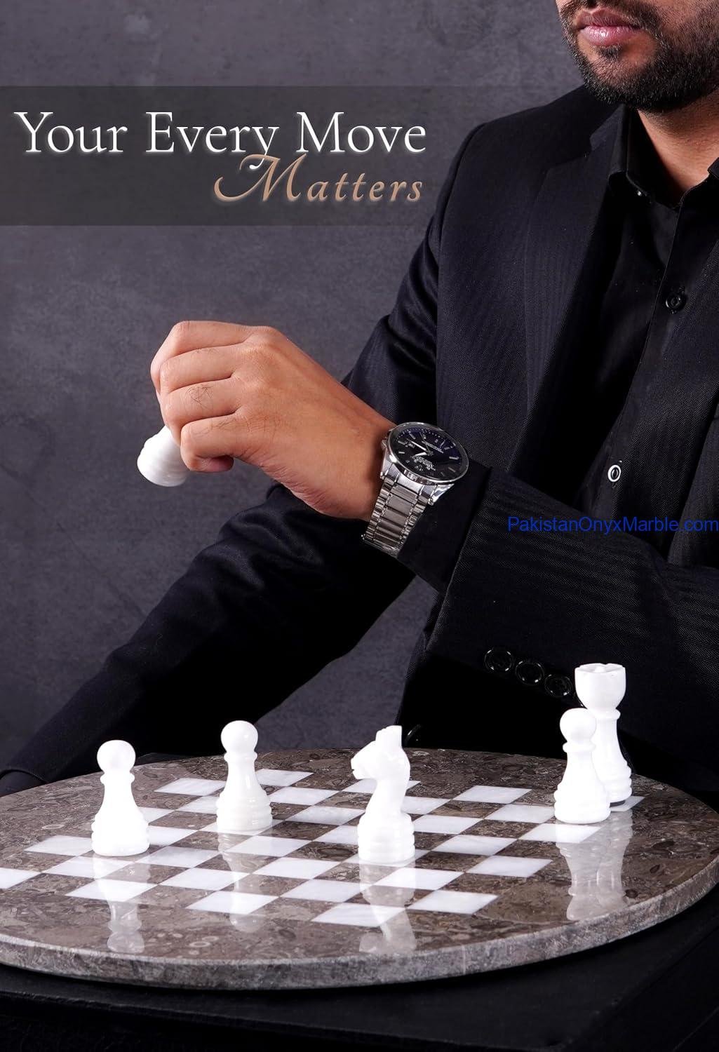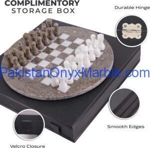 All Marble & Onyx Chess Set Round Boards are handcrafted luxury stone chess sets manufactured in Pakistan for international wholesale and export markets. Designed in a circular format instead of the traditional square board, these round chess sets offer a modern, decorative, and distinctive appearance while remaining fully functional for gameplay.