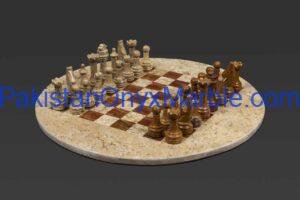 All Marble & Onyx Chess Set Round Boards are handcrafted luxury stone chess sets manufactured in Pakistan for international wholesale and export markets. Designed in a circular format instead of the traditional square board, these round chess sets offer a modern, decorative, and distinctive appearance while remaining fully functional for gameplay.