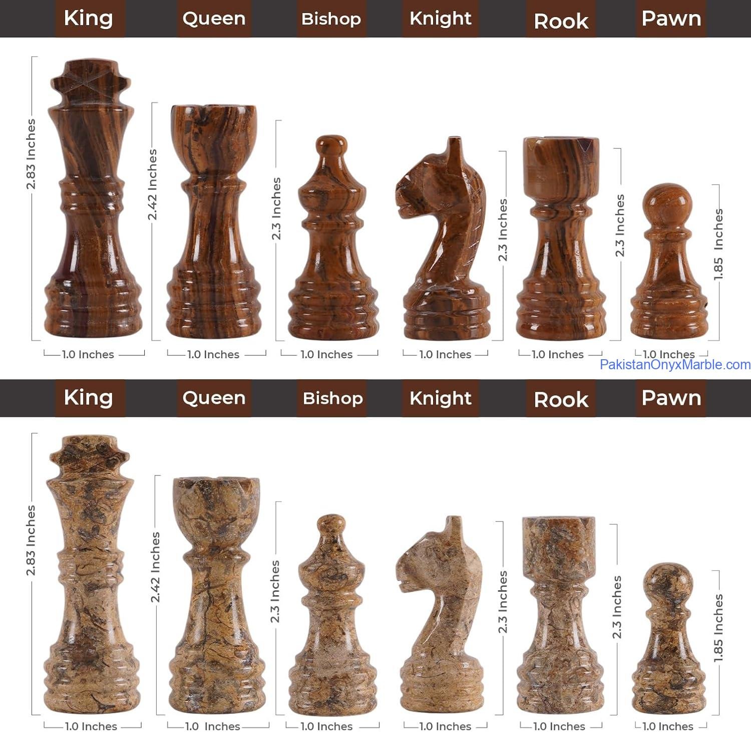 Each chess set displays unique veining and tonal variation. A 5–30% natural color variation is normal and confirms the authenticity of genuine stone.