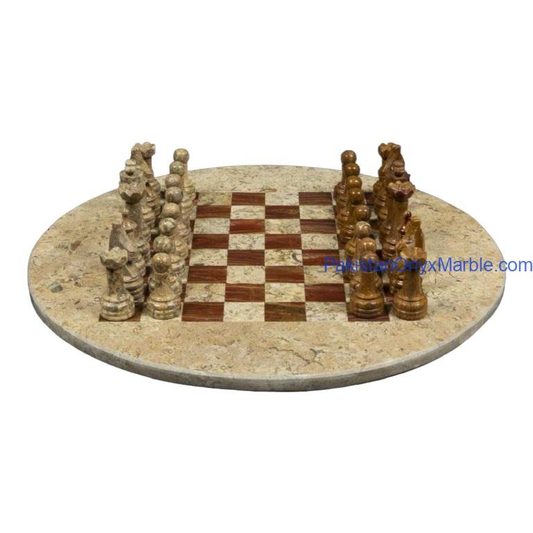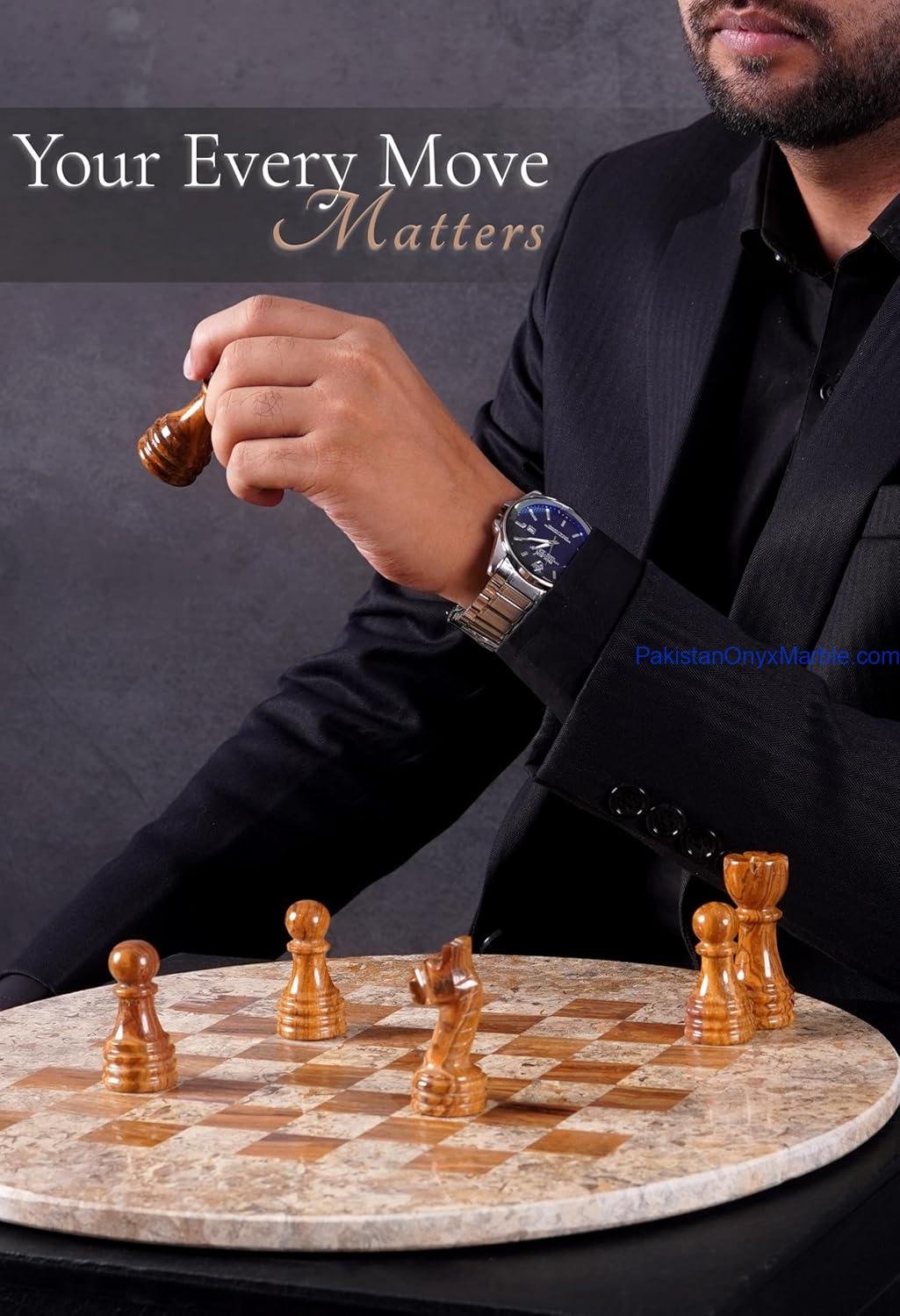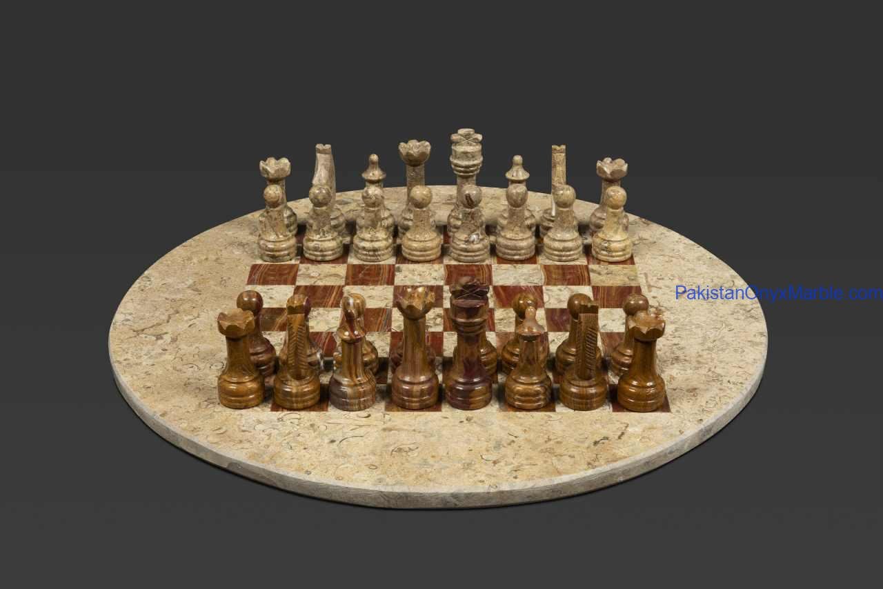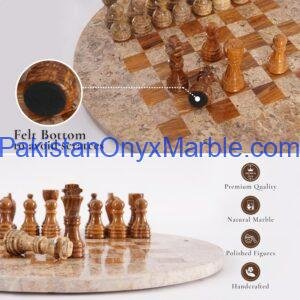 All Marble & Onyx Chess Set Round Boards are handcrafted luxury stone chess sets manufactured in Pakistan for international wholesale and export markets. Designed in a circular format instead of the traditional square board, these round chess sets offer a modern, decorative, and distinctive appearance while remaining fully functional for gameplay.