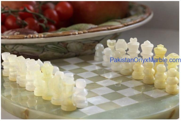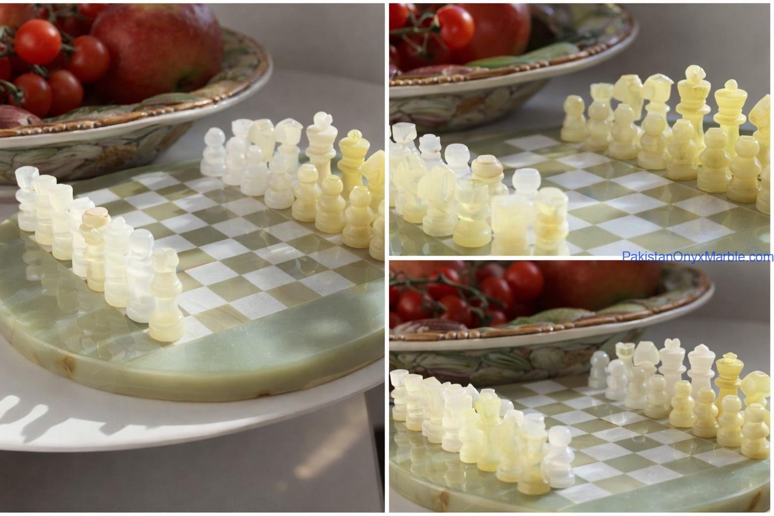 Onyx Chess Set Round Board: Green Onyx & White Onyx Handmade Luxury Board & Pieces Photo Gallery