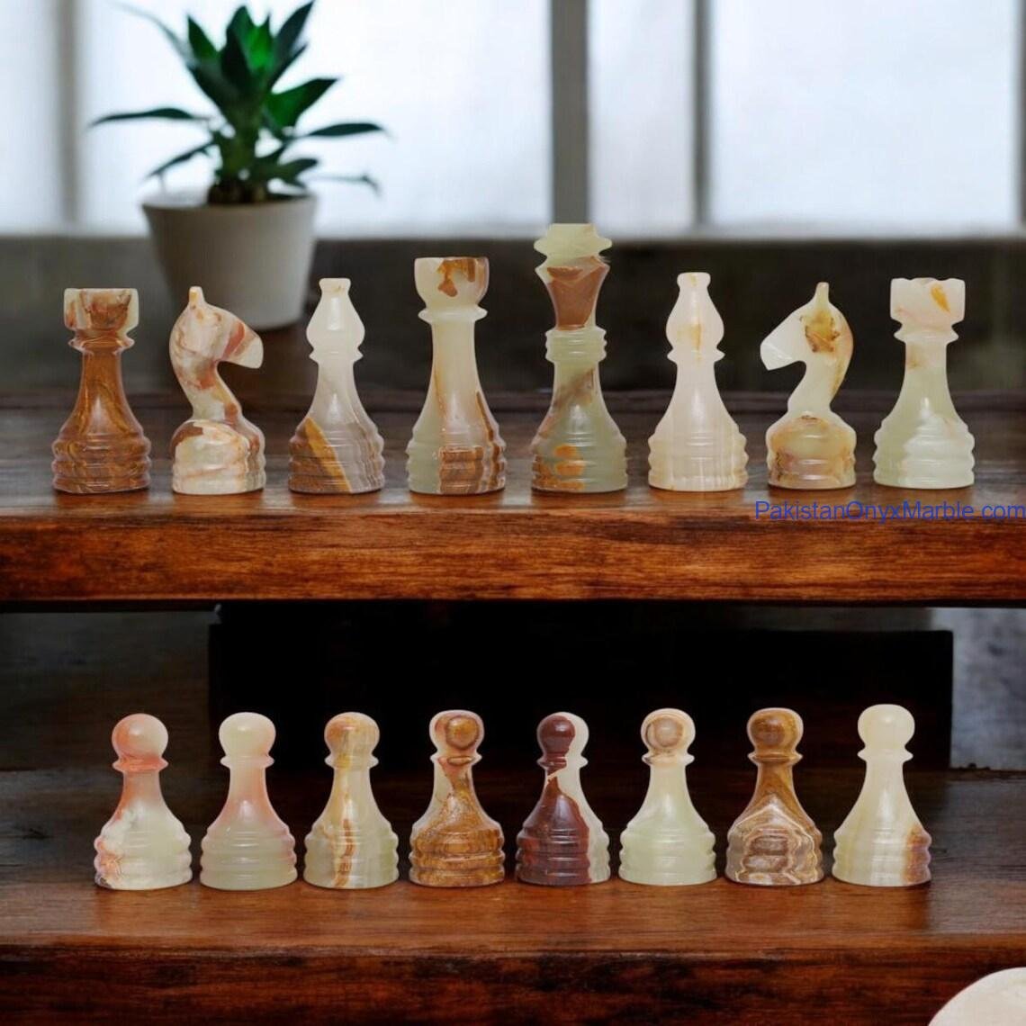 Matching marble or onyx chess pieces