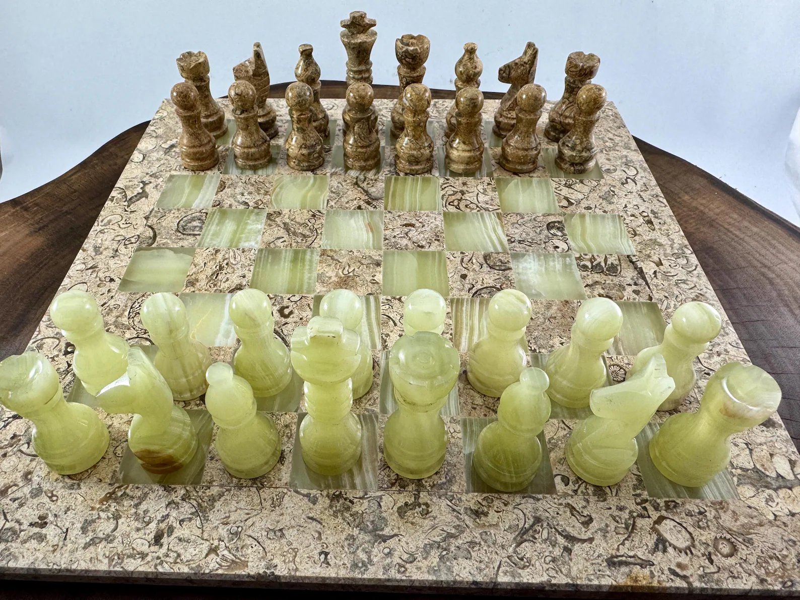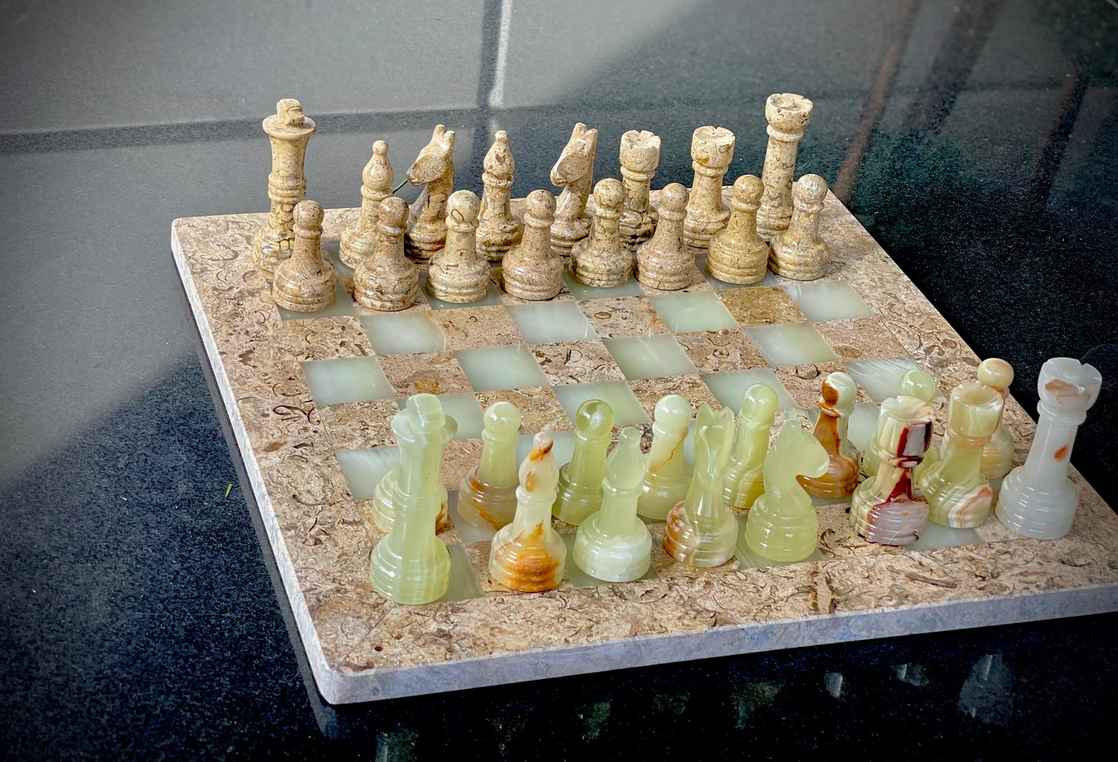 Matching marble or onyx chess pieces