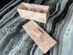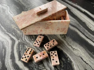 Most marble domino sets are supplied with a storage box to protect the tiles and enhance presentation. Boxes may be made from marble, wood, or decorative packaging materials depending on the design.