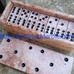 All domino pieces are made from 100% natural marble stone, selected for its durability, natural beauty, and polished finish. The material provides a premium look compared to plastic or resin domino sets.