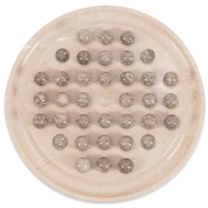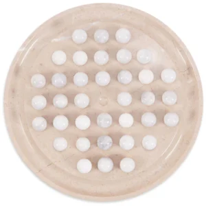 All solitaire boards and pieces are made from natural marble stone, selected for its durability, polished surface, and decorative appearance. Marble offers a premium alternative to plastic or wooden board games.