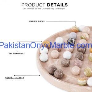 Manufactured and exported by Pakistan Onyx Marble, these solitaire sets are produced using natural marble sourced from Pakistan’s stone regions. The manufacturing process includes stone block selection, cutting, drilling board holes, polishing, quality inspection, and export-grade packing.