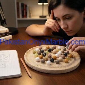 Manufactured and exported by Pakistan Onyx Marble, specializing in natural stone handicrafts and luxury board game products for international wholesale markets.