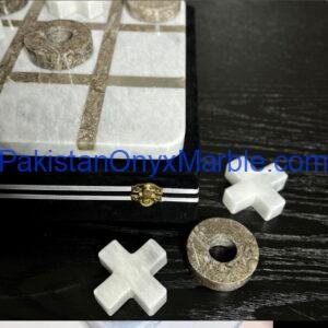 Manufactured and exported by Pakistan Onyx Marble, these tic tac toe sets are produced using carefully selected natural marble stone. The manufacturing process includes cutting, shaping, engraving grid lines, polishing, quality inspection, and export-grade packing.