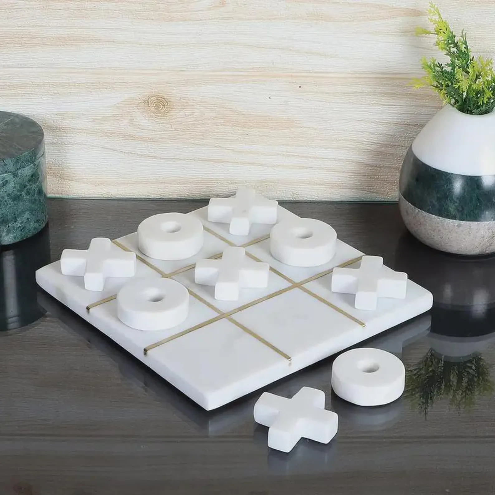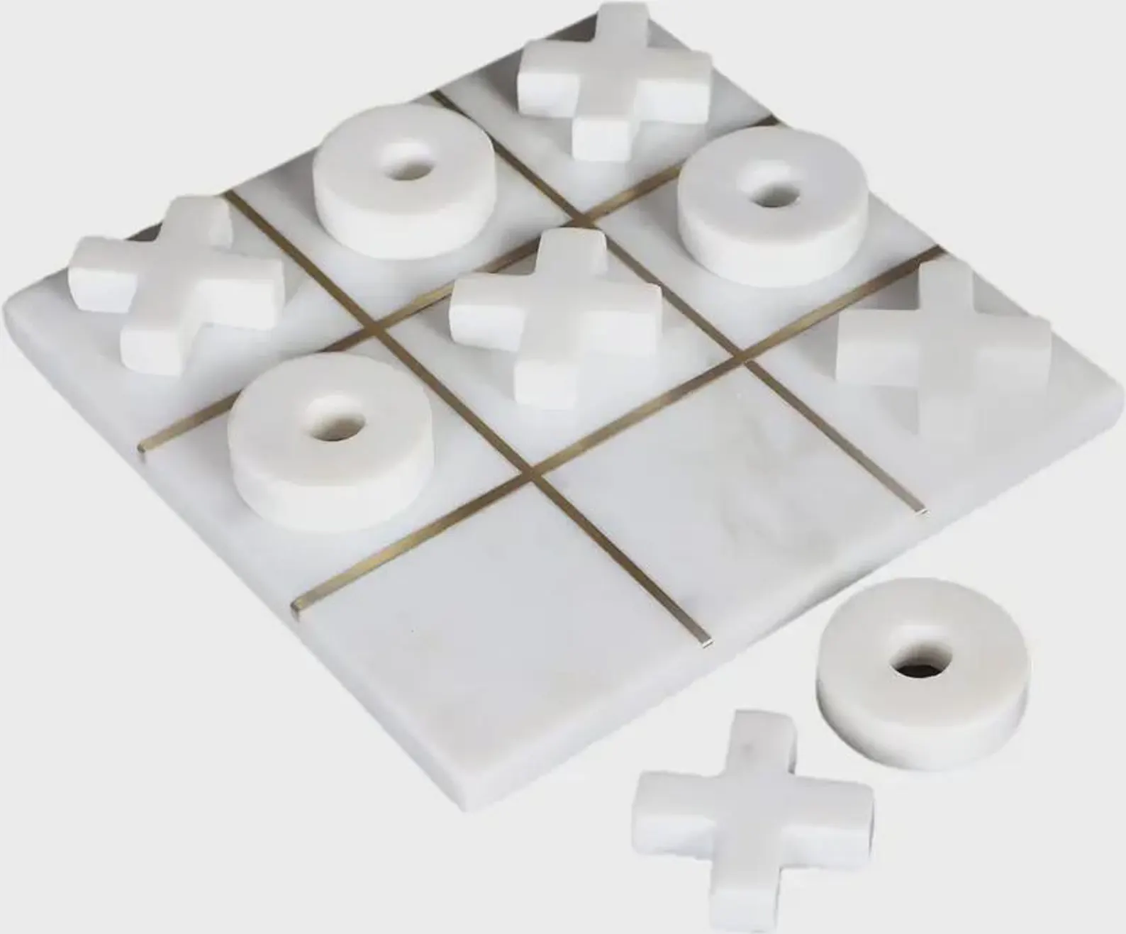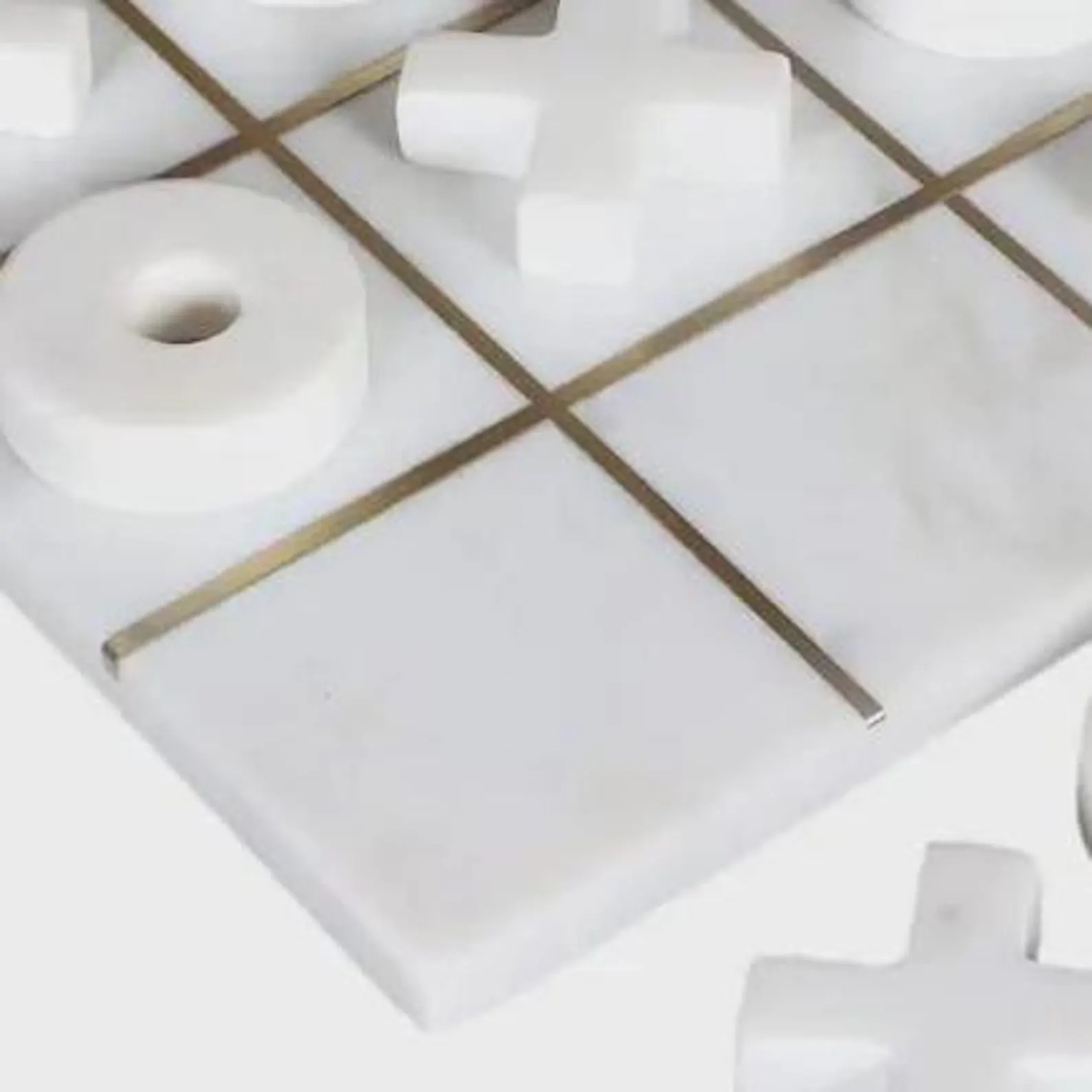 Marble Premium Quality Tic Tac Toe Set White Marble With Brass Line Handmade Luxury Pieces & Board Photo Gallery