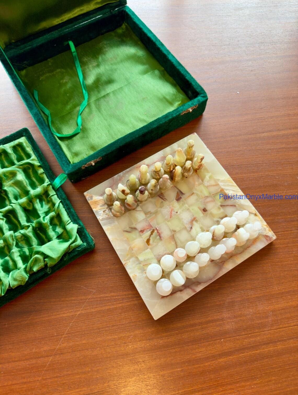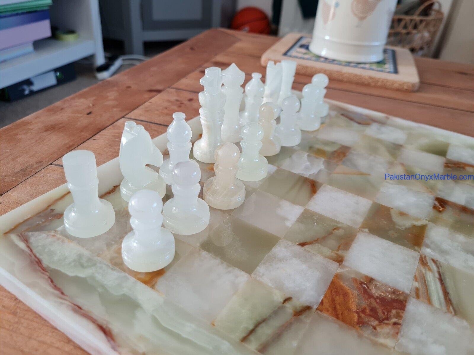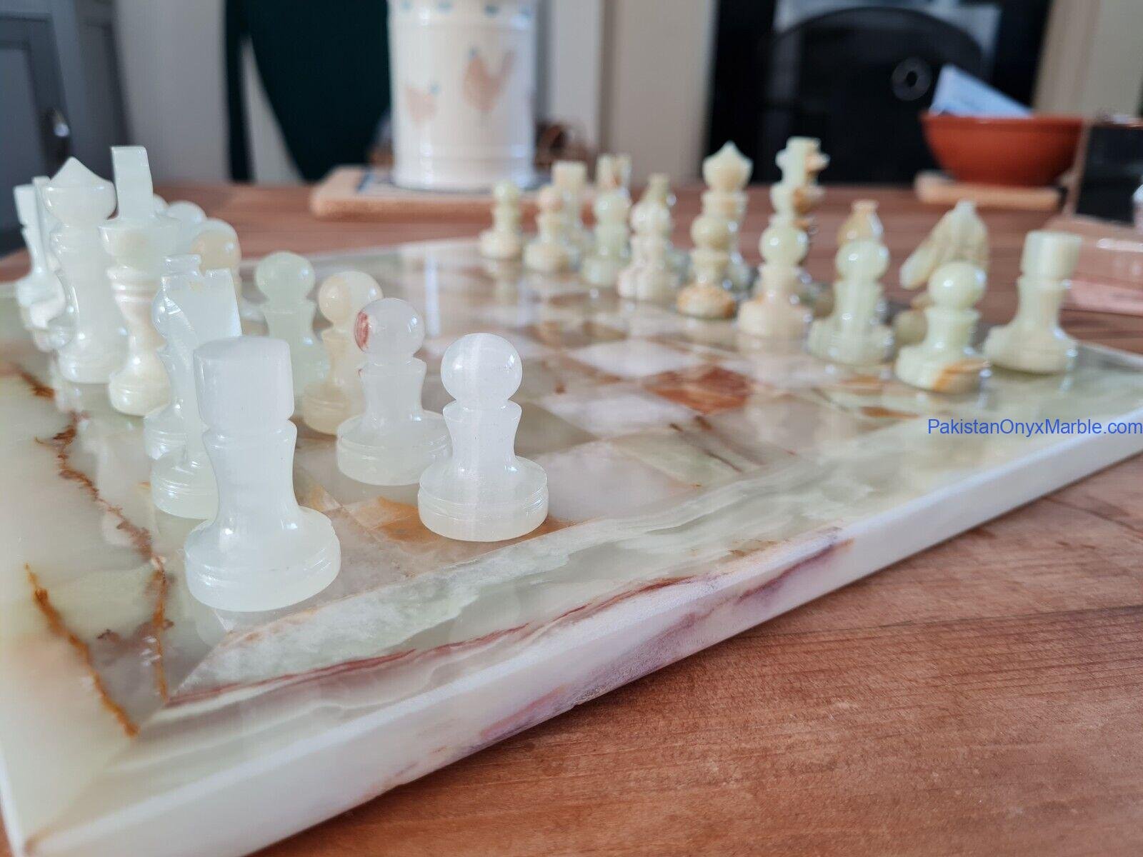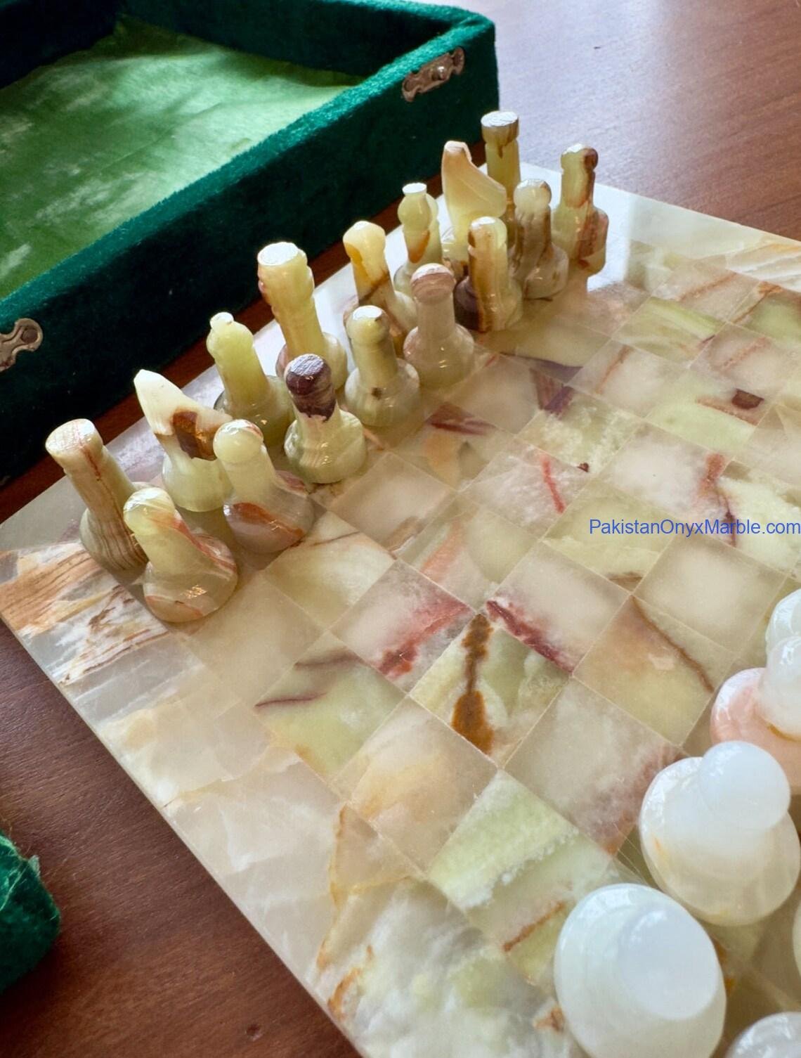 All chess boards and pieces are produced using carefully selected natural onyx: