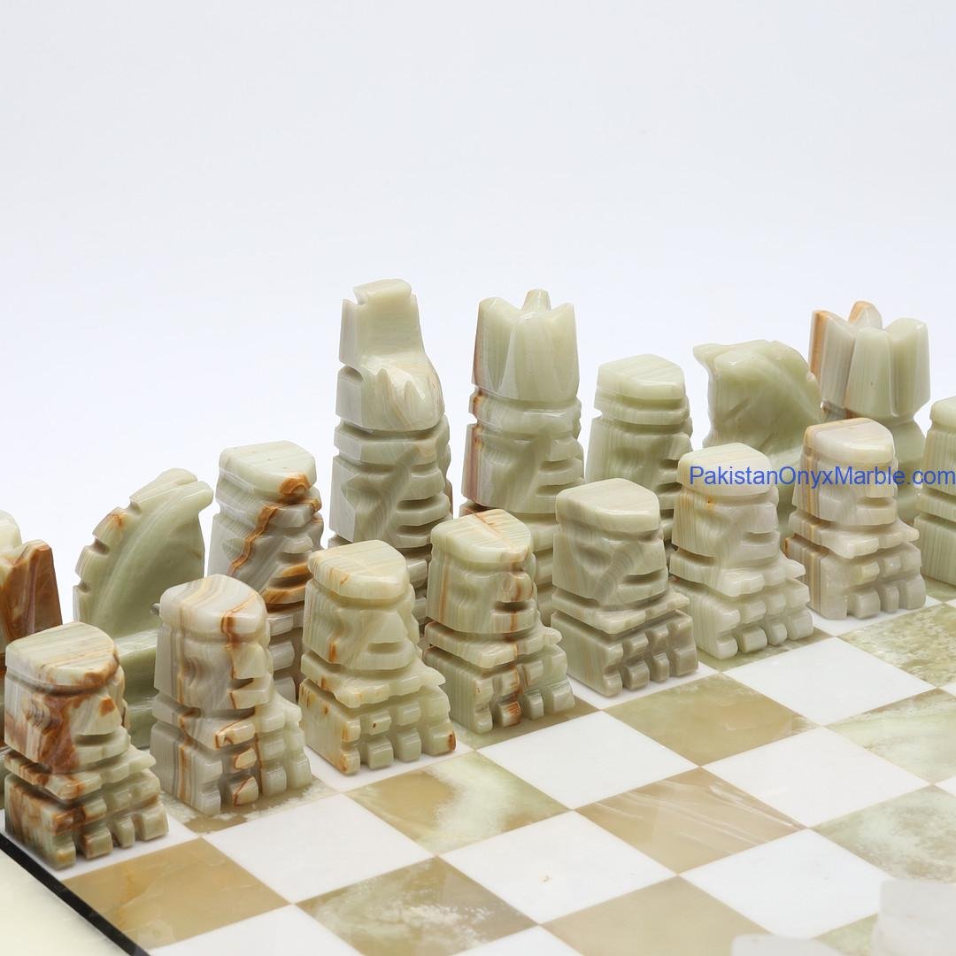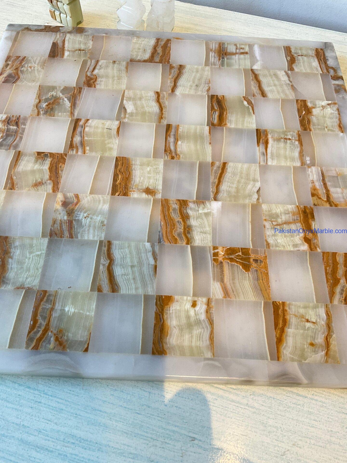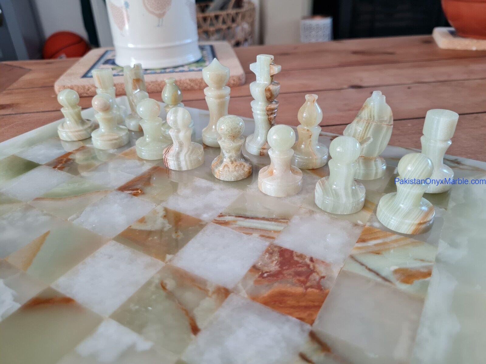 All chess boards and pieces are produced using carefully selected natural onyx: