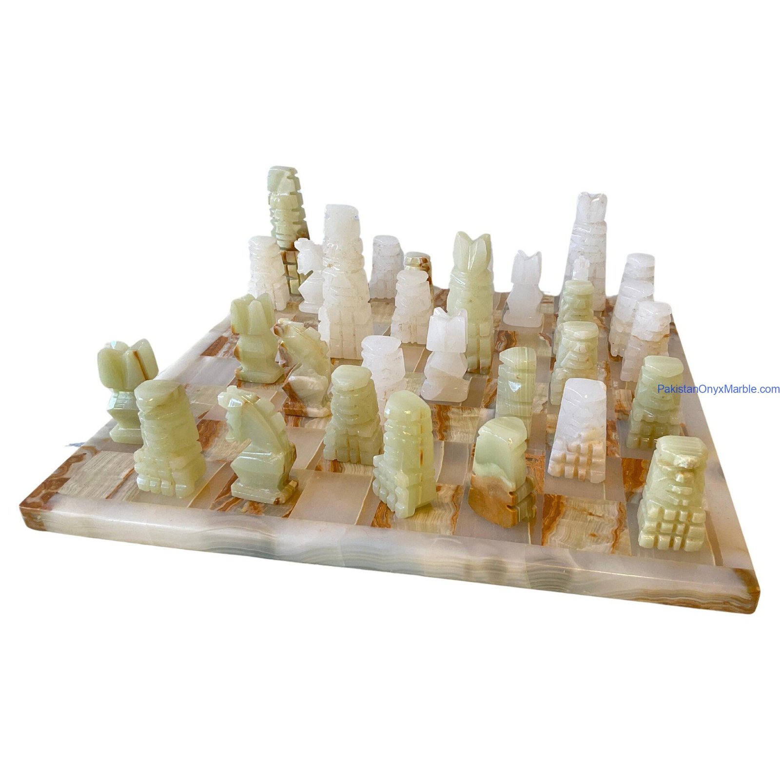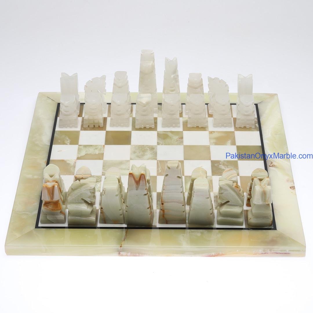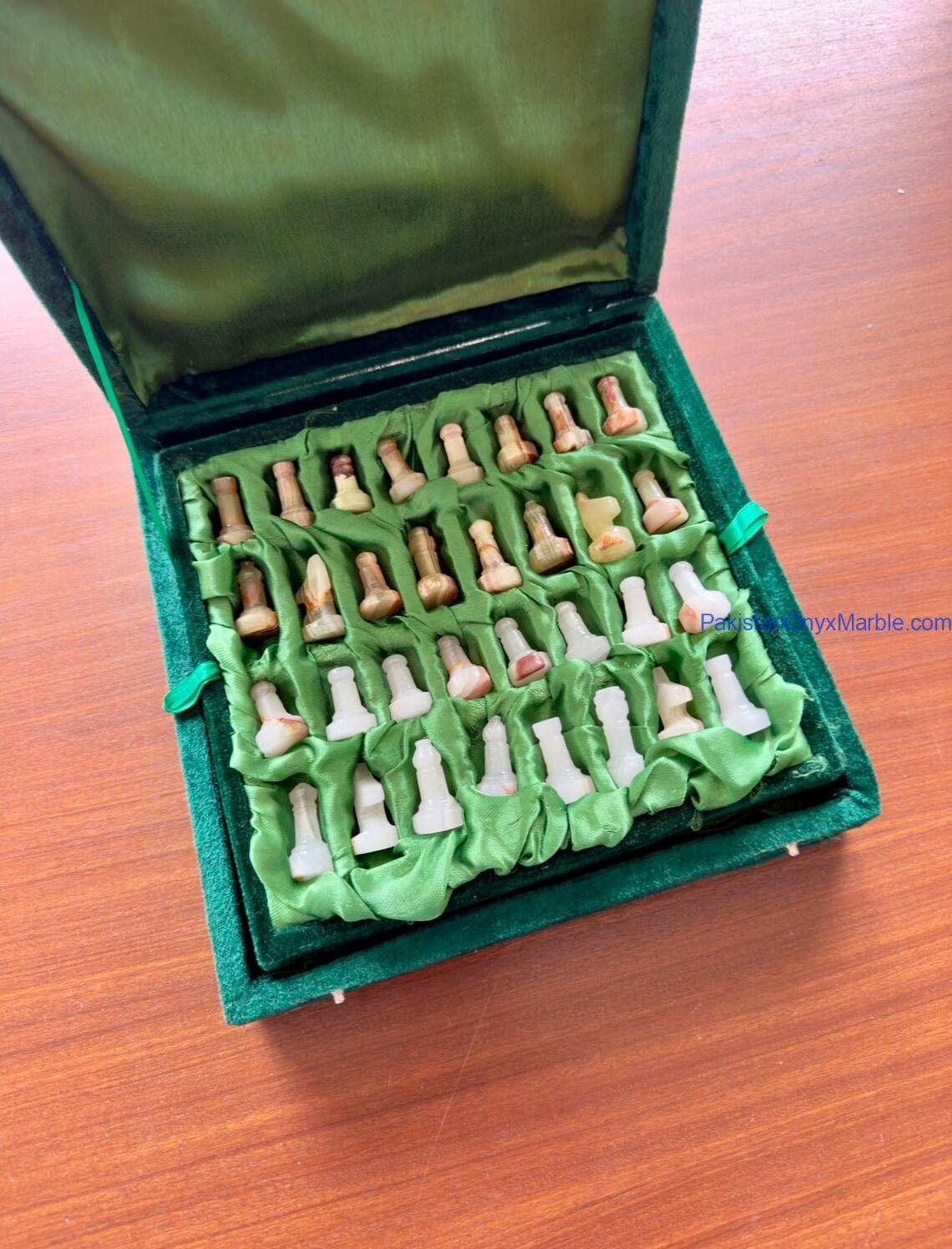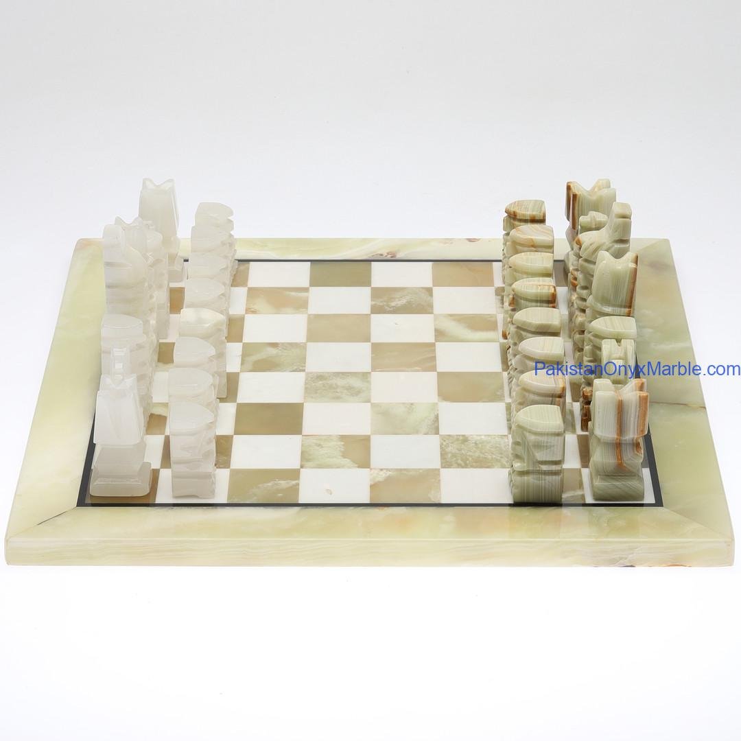 All chess boards and pieces are produced using carefully selected natural onyx:
