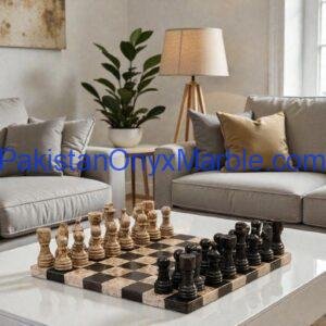All Onyx Chess Sets and Boards & Pieces are handcrafted luxury stone products made from 100% natural onyx marble, manufactured in Pakistan for global wholesale and export markets. Each set includes a solid onyx chess board and hand-carved stone chess pieces, designed to function as both a playable board game and a high-end decorative item. These products are positioned for premium buyers who value natural materials, craftsmanship, and durability rather than mass-produced uniformity.