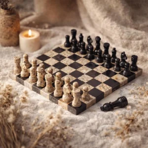 All Onyx Chess Sets and Boards & Pieces are handcrafted luxury stone products made from 100% natural onyx marble, manufactured in Pakistan for global wholesale and export markets. Each set includes a solid onyx chess board and hand-carved stone chess pieces, designed to function as both a playable board game and a high-end decorative item. These products are positioned for premium buyers who value natural materials, craftsmanship, and durability rather than mass-produced uniformity.