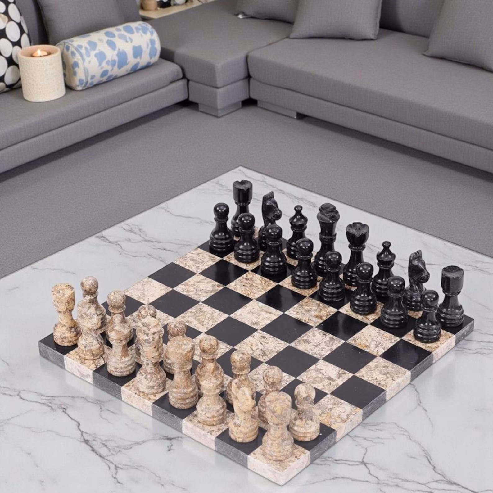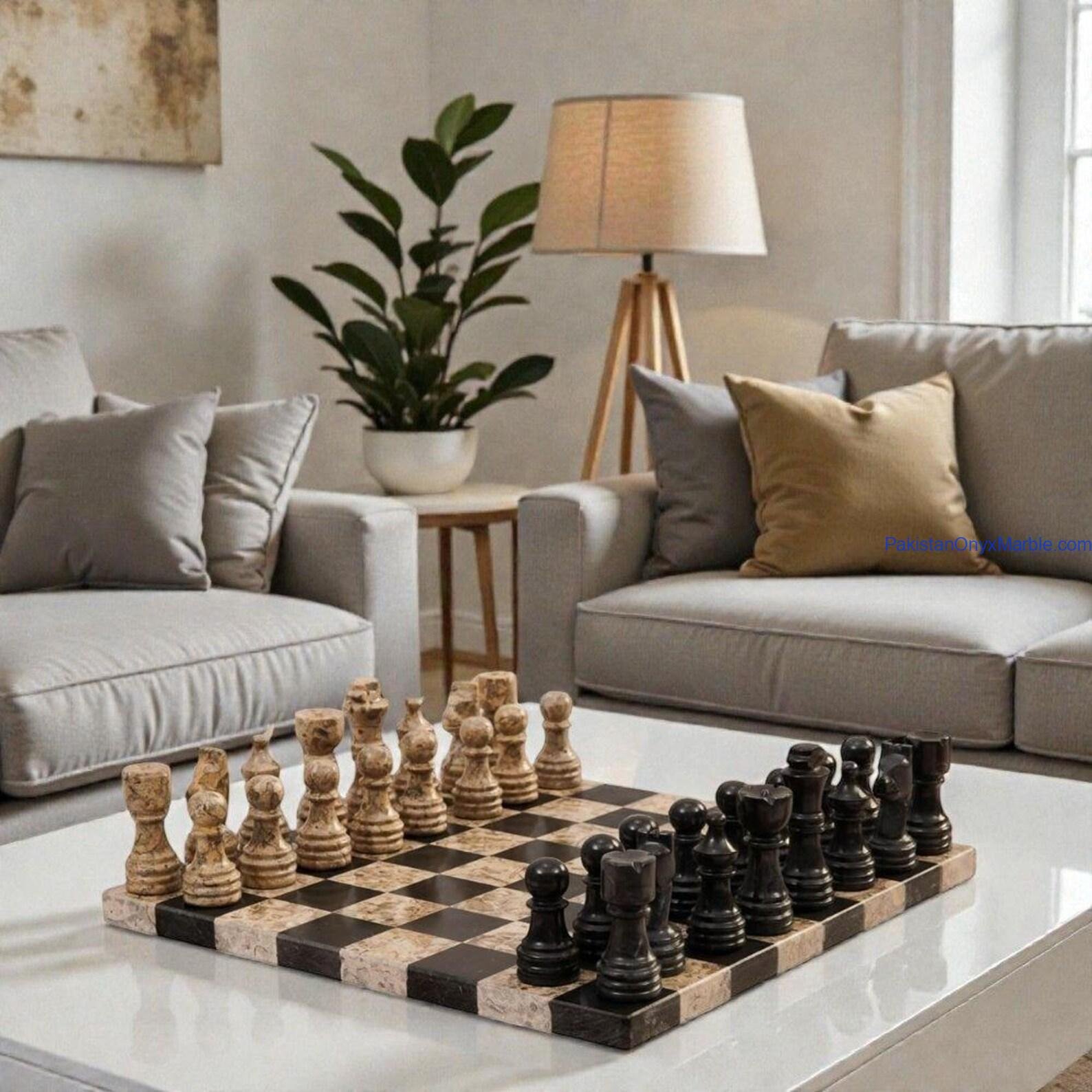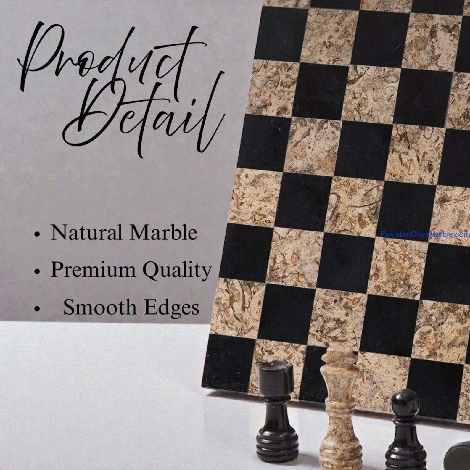 Each chess set displays unique veining and tonal variation. A 5–30% natural color variation is normal and confirms the authenticity of genuine stone.
