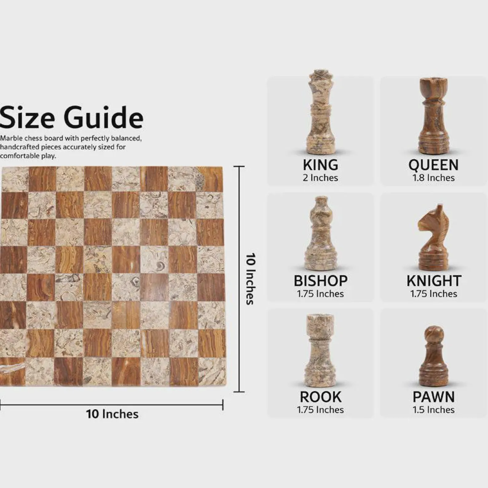 Onyx Marble Chess Set Border Less: Brown Onyx & Fossil Coral Marble Handmade Luxury Board & Pieces