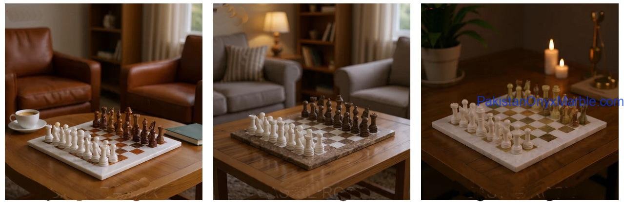 All Onyx Chess Sets and Boards & Pieces are handcrafted luxury stone products made from 100% natural onyx marble, manufactured in Pakistan for global wholesale and export markets. Each set includes a solid onyx chess board and hand-carved stone chess pieces, designed to function as both a playable board game and a high-end decorative item. These products are positioned for premium buyers who value natural materials, craftsmanship, and durability rather than mass-produced uniformity.