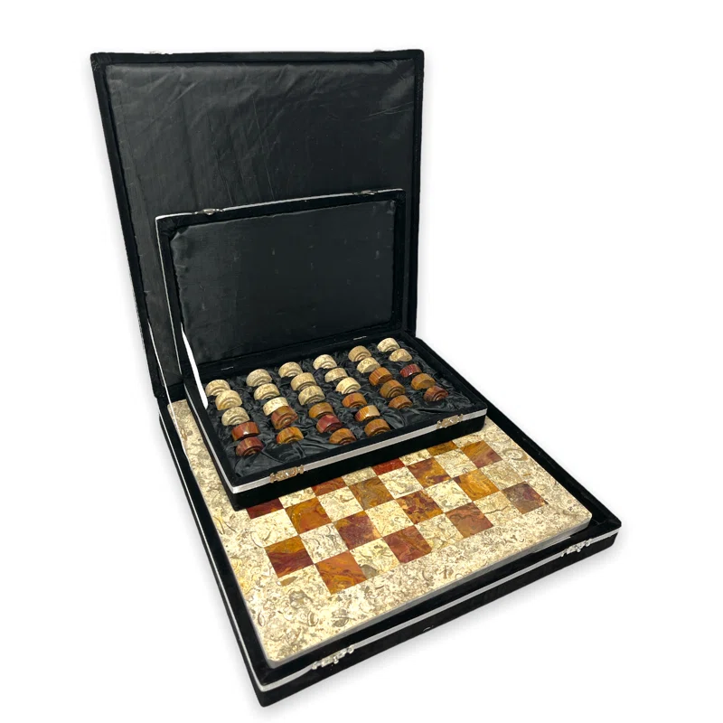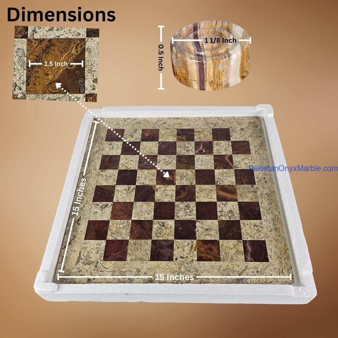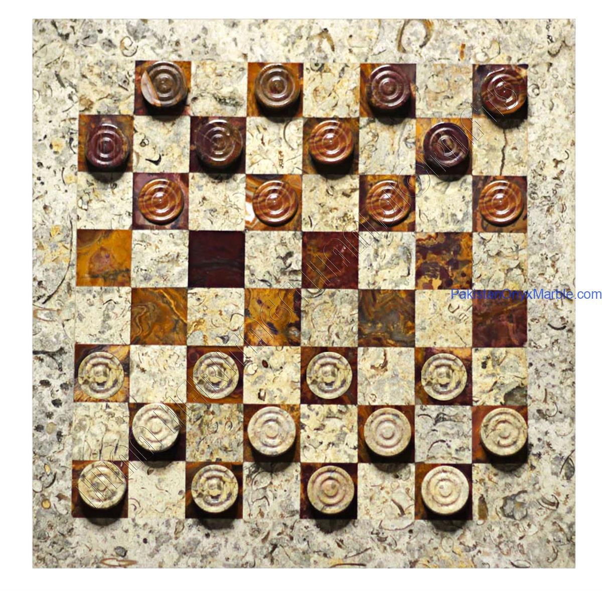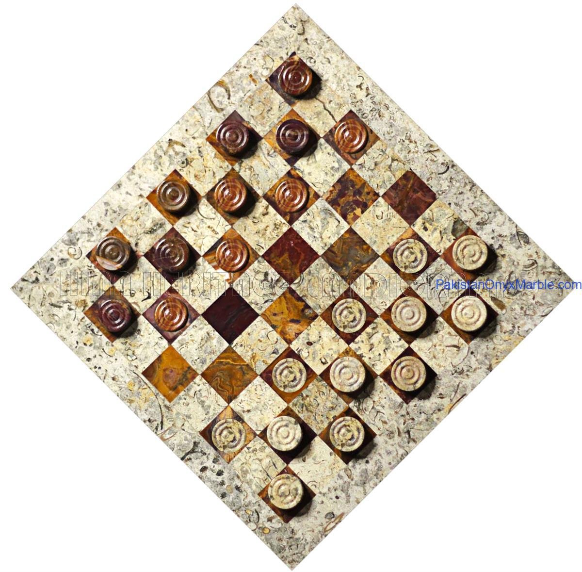 Marble Onyx Checker Set Premium Quality: Fossil Coral Marble & Brown Onyx Handmade Luxury Board & Pieces Photo Gallery