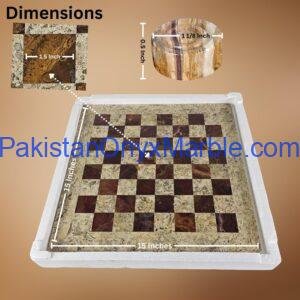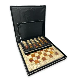 Checker sets are manufactured using natural marble, onyx, and travertine stone sourced from Pakistan’s stone quarries. These materials are widely valued for their durability, natural patterns, and premium aesthetic.
