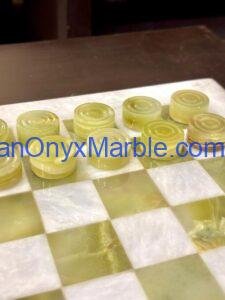 Marble Onyx Checker Set Premium Quality: White Marble & Green Onyx Handmade Luxury Board & Pieces Photo Gallery