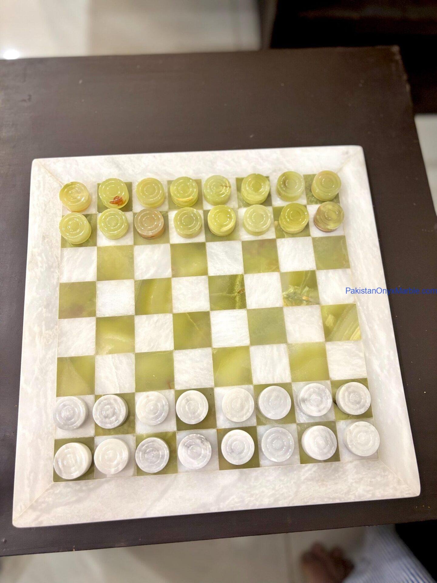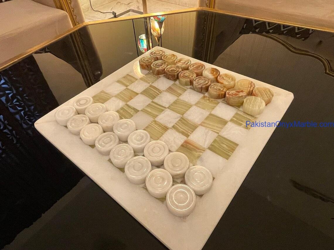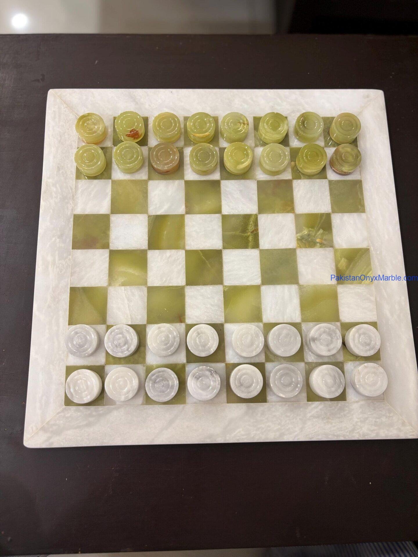 Marble Onyx Checker Set Premium Quality: White Marble & Green Onyx Handmade Luxury Board & Pieces Photo Gallery