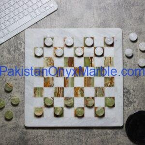 All Onyx Marble Checker Sets are handcrafted luxury stone board game sets made from 100% natural onyx marble, produced in Pakistan for global wholesale and export markets. These premium checker sets include a solid onyx checker board paired with precision-cut checker pieces, combining traditional stone craftsmanship with modern decorative design.