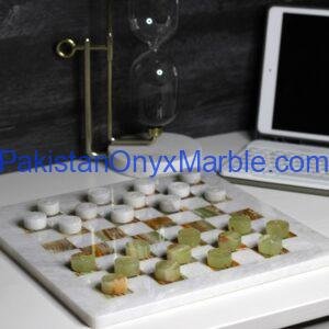 Checker sets are manufactured using natural marble, onyx, and travertine stone sourced from Pakistan’s stone quarries. These materials are widely valued for their durability, natural patterns, and premium aesthetic.