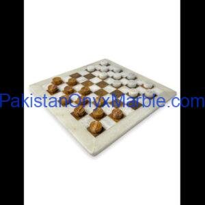 Checker sets are manufactured using natural marble, onyx, and travertine stone sourced from Pakistan’s stone quarries. These materials are widely valued for their durability, natural patterns, and premium aesthetic.