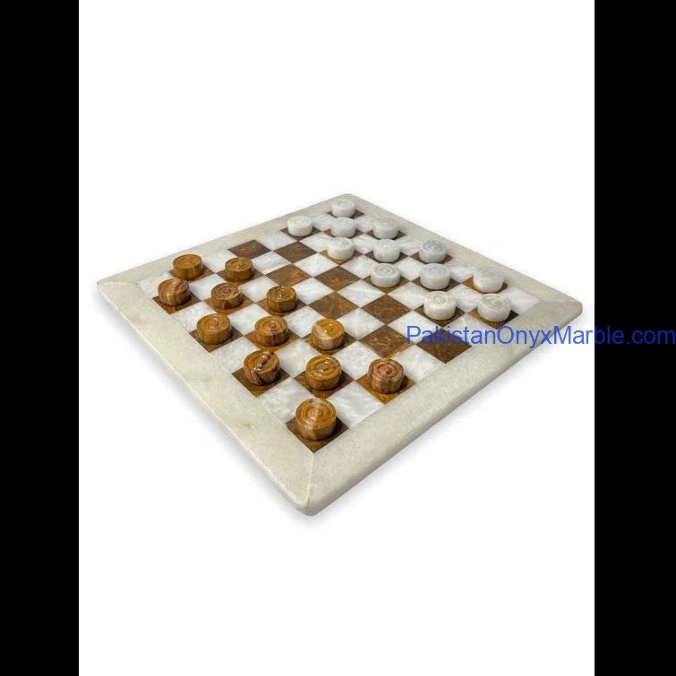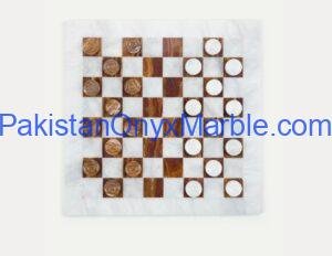 Checker sets are manufactured using natural marble, onyx, and travertine stone sourced from Pakistan’s stone quarries. These materials are widely valued for their durability, natural patterns, and premium aesthetic.