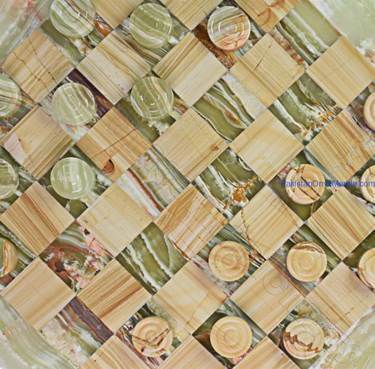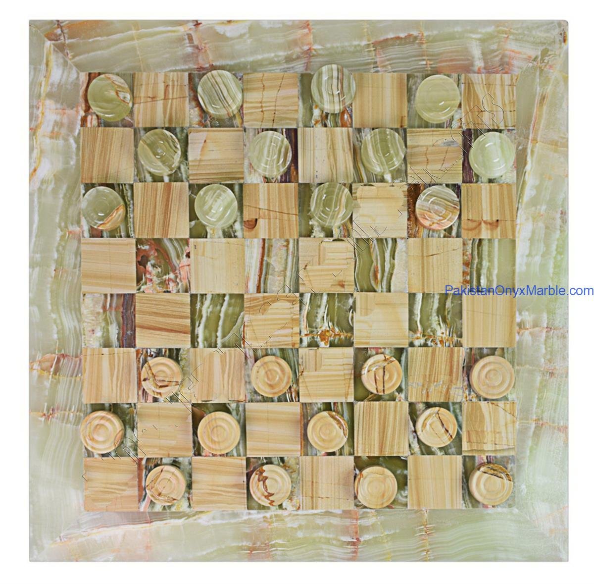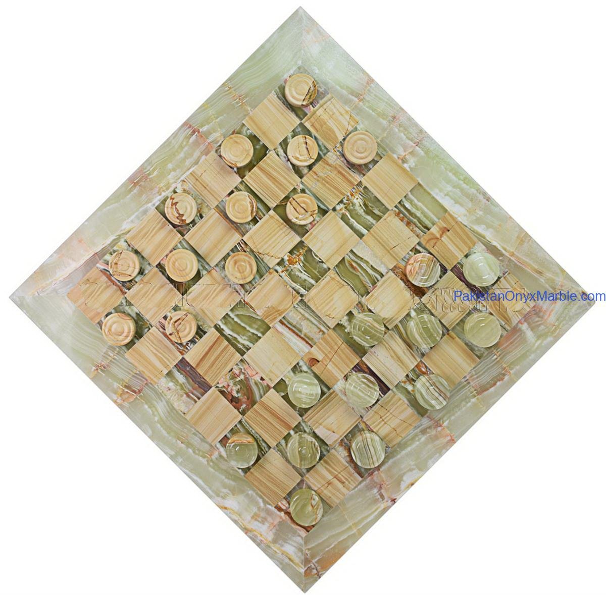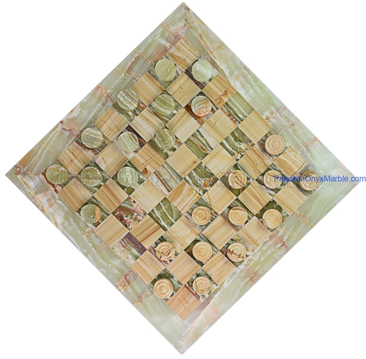 Onyx marble checker boards are produced in several elegant designs, including: