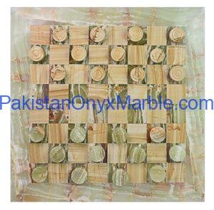 All Onyx Marble Checker Sets are handcrafted luxury stone board game sets made from 100% natural onyx marble, produced in Pakistan for global wholesale and export markets. These premium checker sets include a solid onyx checker board paired with precision-cut checker pieces, combining traditional stone craftsmanship with modern decorative design.