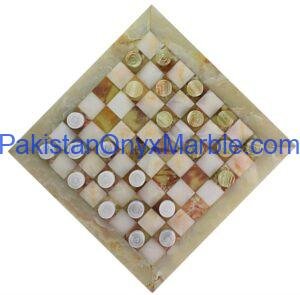 Checker sets are manufactured using natural marble, onyx, and travertine stone sourced from Pakistan’s stone quarries. These materials are widely valued for their durability, natural patterns, and premium aesthetic.