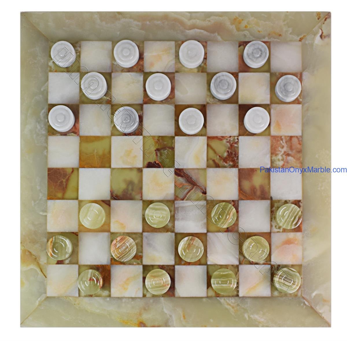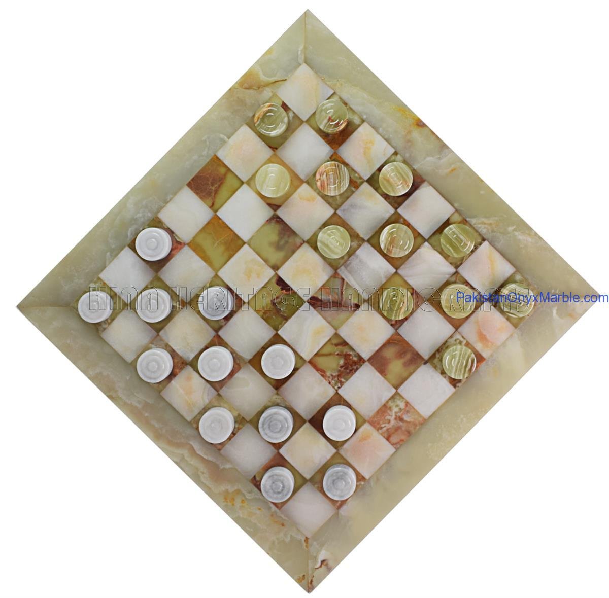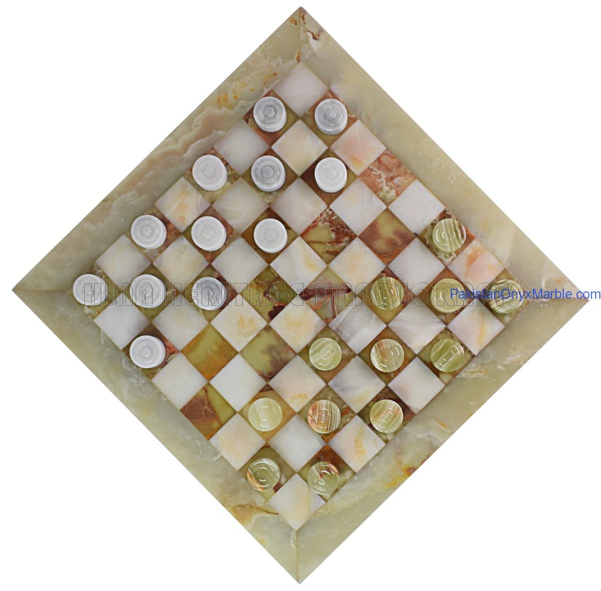 Onyx marble checker boards are produced in several elegant designs, including:
