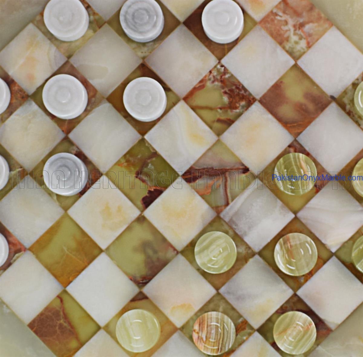 Checker sets are manufactured using natural marble, onyx, and travertine stone sourced from Pakistan’s stone quarries. These materials are widely valued for their durability, natural patterns, and premium aesthetic.
